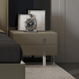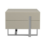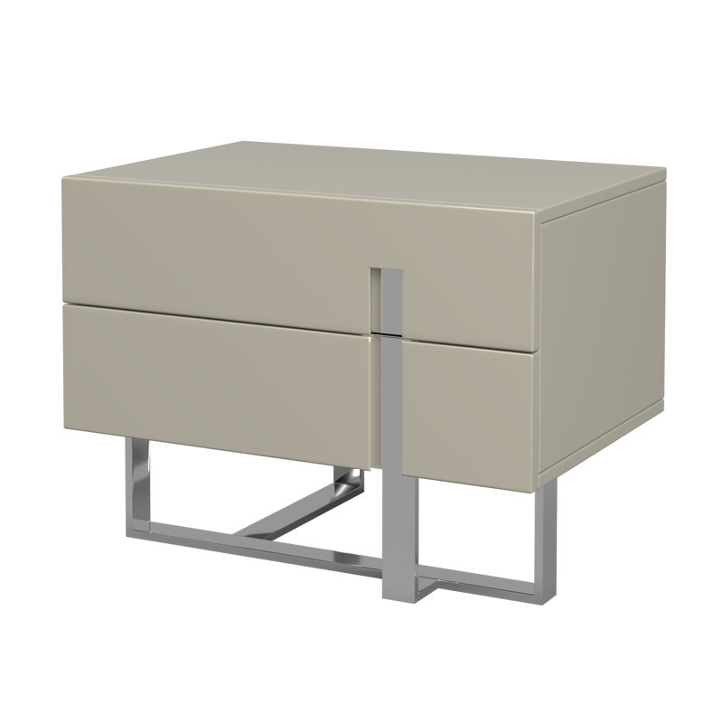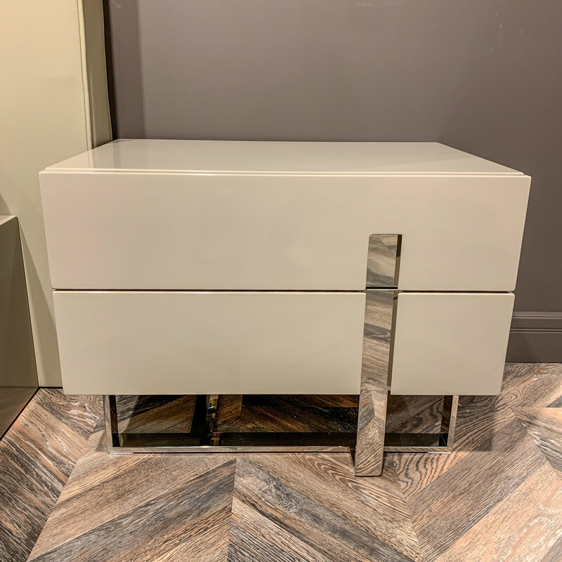 Прикроватная тумбочка с 2 ящиками из коллекции Vigo от MOD Interiors выполнена в современном европейском стиле. Изготовленная из высококачественных материалов с глянцевым серо-бежевым лаком, она привносит в пространство легкость и стиль, отражая свет и создавая уютную атмосферу. Модель очень практична: ее вместительные ящики позволяют организовать пространство, сохраняя при этом порядок и стиль. Чистые линии и лаконичные формы делают ее универсальным аксессуаром, который легко адаптируется к различным дизайнерским концепциям — от минимализма до современного искусства. Vigo становится не просто функциональным предметом, а настоящим акцентом стиля, способным вдохновить дизайнеров на создание уникальных интерьеров, где каждая деталь имеет значение. Модель изготовлена из высококачественной МДФ высокой плотности. Ножки и вставка — из высококачественной полированной стали.