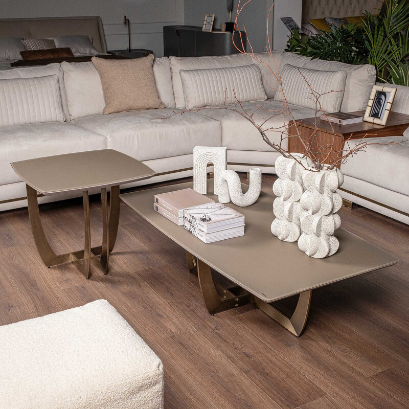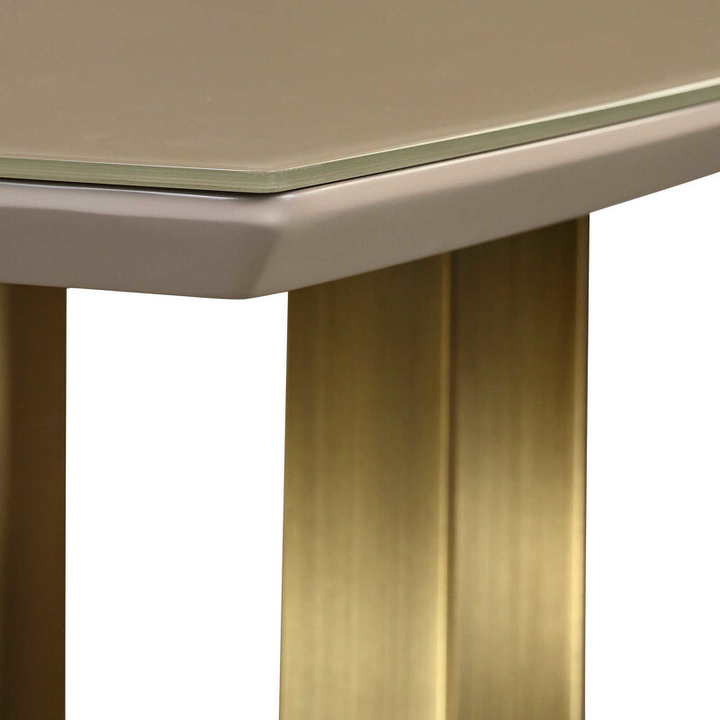 Приставной столик в стиле ар-деко на золотом каркасе от итальянского бренда Fratelli Barri. Столешница выполнена из МДФ, сверху дополнена закаленным стеклом. Данный предмет — часть новой коллекции Concept от Fratelli Barri, включающей всю корпусную мебель для спальни, гостиной и столовой. Вы можете оформить интерьер вашей квартиры или дома в едином стиле.