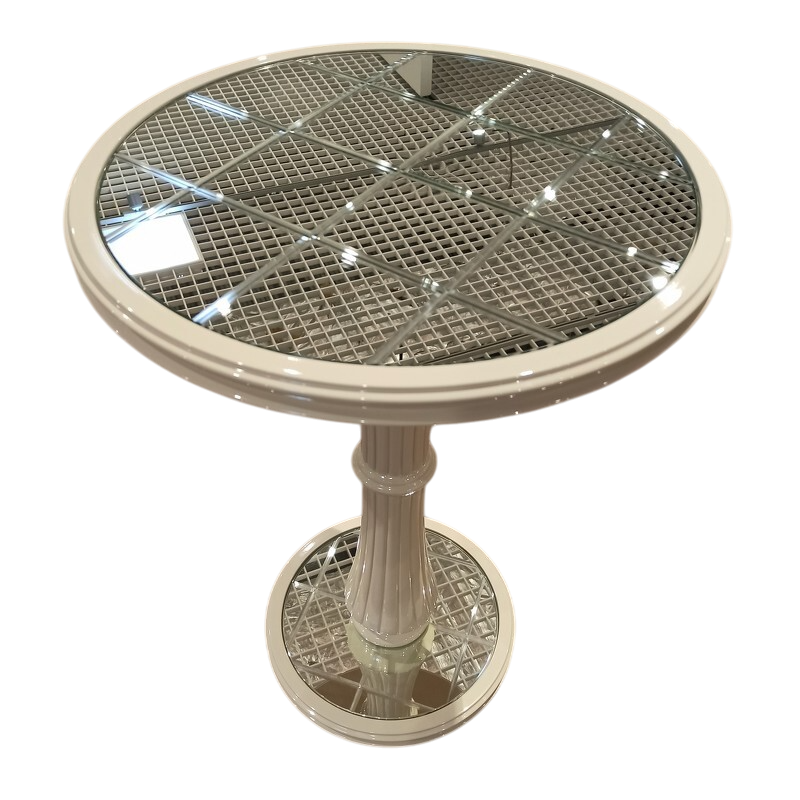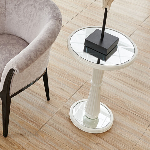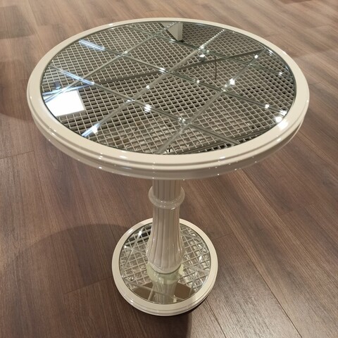 Приставной столик Florence от итальянского бренда Fratelli Barri с круглой столешницей и круглой базой выполнен в стиле близком к классическому. Зеркальные топ и база придают особый шарм этому поистине изысканному предмету интерьера. Топ и база выполнены из МДФ класса Е1. Ножка - из массива дерева. Отделка - бежевый блестящий лак.