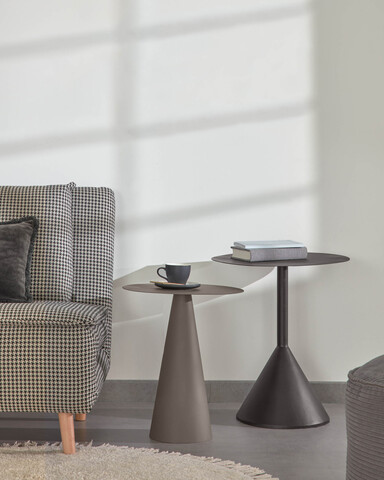 Приставной столик Yinan Ø 48 cm черный от фабрики La Forma – сдержанный must have аксессуар для каждой гостиной, идеально подходящий для вашего кофе или книги. Приставной столик Yinan – это минималистичная модель, форма которой объединяет в себе сразу три геометрические фигуры. В результате такого соседства изделие не выглядит просто и банально. А металлическая составляющая – как гарантия прочности и долговечности изделия. Столик круглый, полностью сделан из металла. Покрытие матовое, цвет черный. Здесь используется особая технология нанесения краски, которая обеспечивает идеально ровное покрытие. Столешницу толщиной 2 мм удерживает трубчатая нога, диаметр которой составляет 4 см. Далее она переходит в конусное основание с нижним диаметром 32 см. Для защиты напольного покрытия от повреждений предусмотрена войлочная подкладка. Максимально допустимая нагрузка – 8 кг. Размеры: ширина – 48 см, высота – 55 см. Вес – 5.28 кг. Потребуется минимальная сборка.
