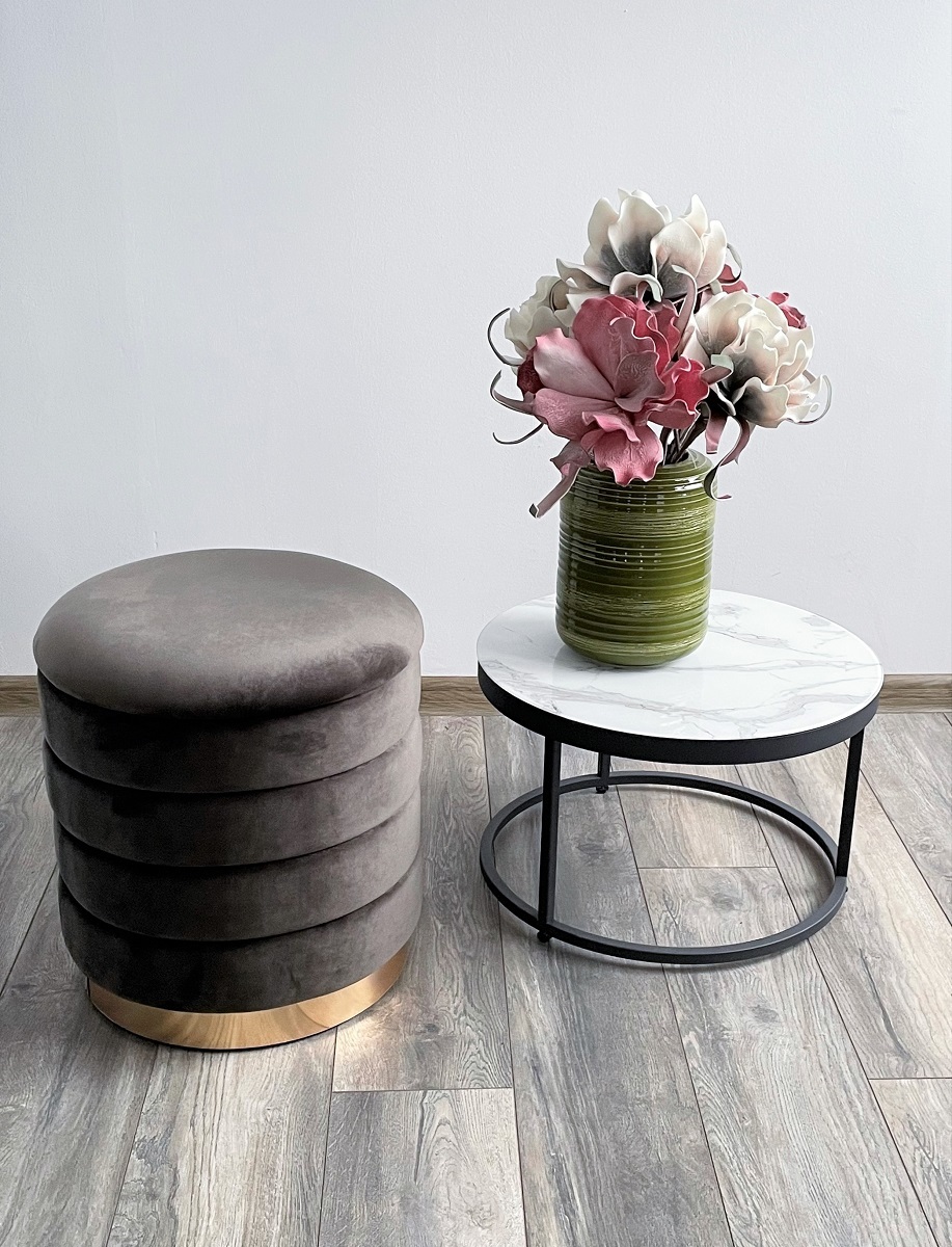 Пуф для гостиной ФРЕД графит #14, велюр / золотой каркас М-City