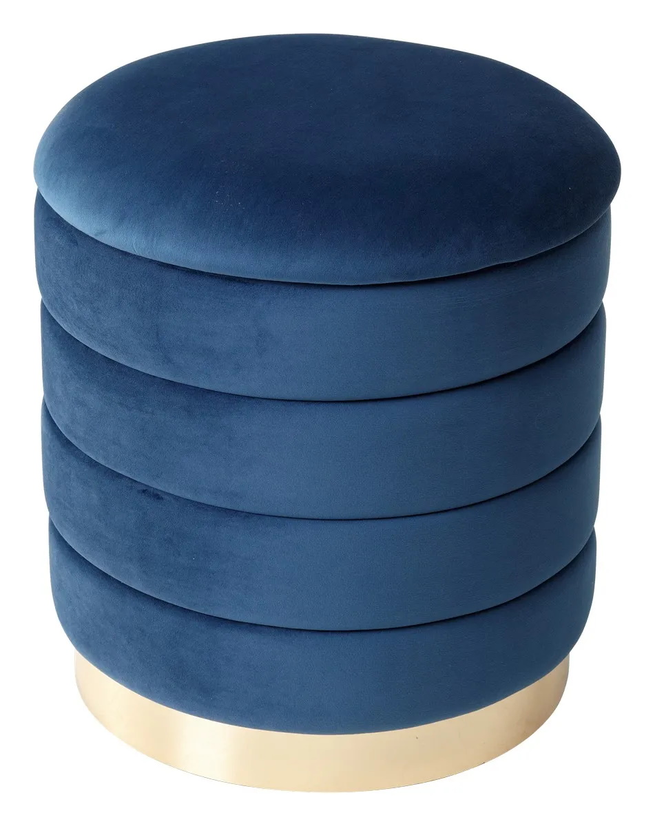 Пуф для гостиной ФРЕД синий #29, велюр / золотой каркас