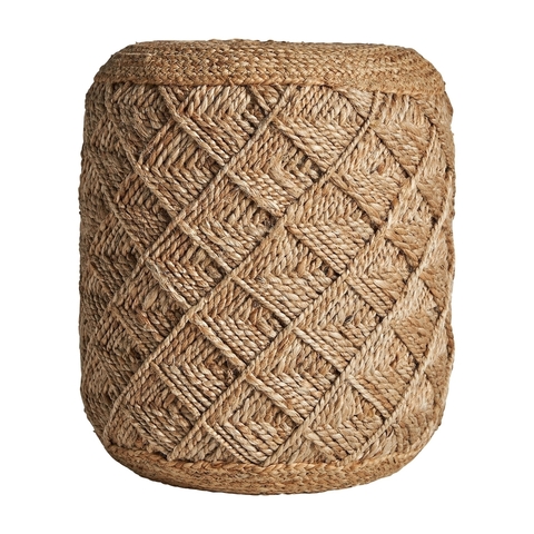 Уютная текстура. Этот коричневый джутовый пуф с плетеным узором и винтажным стилем идеально подойдет в качестве дополнительного сиденья или места, которое добавит индивидуальности и нотки природы в любой уголок. Ширина: 40 см, Глубина: 40 см, Высота: 46 см