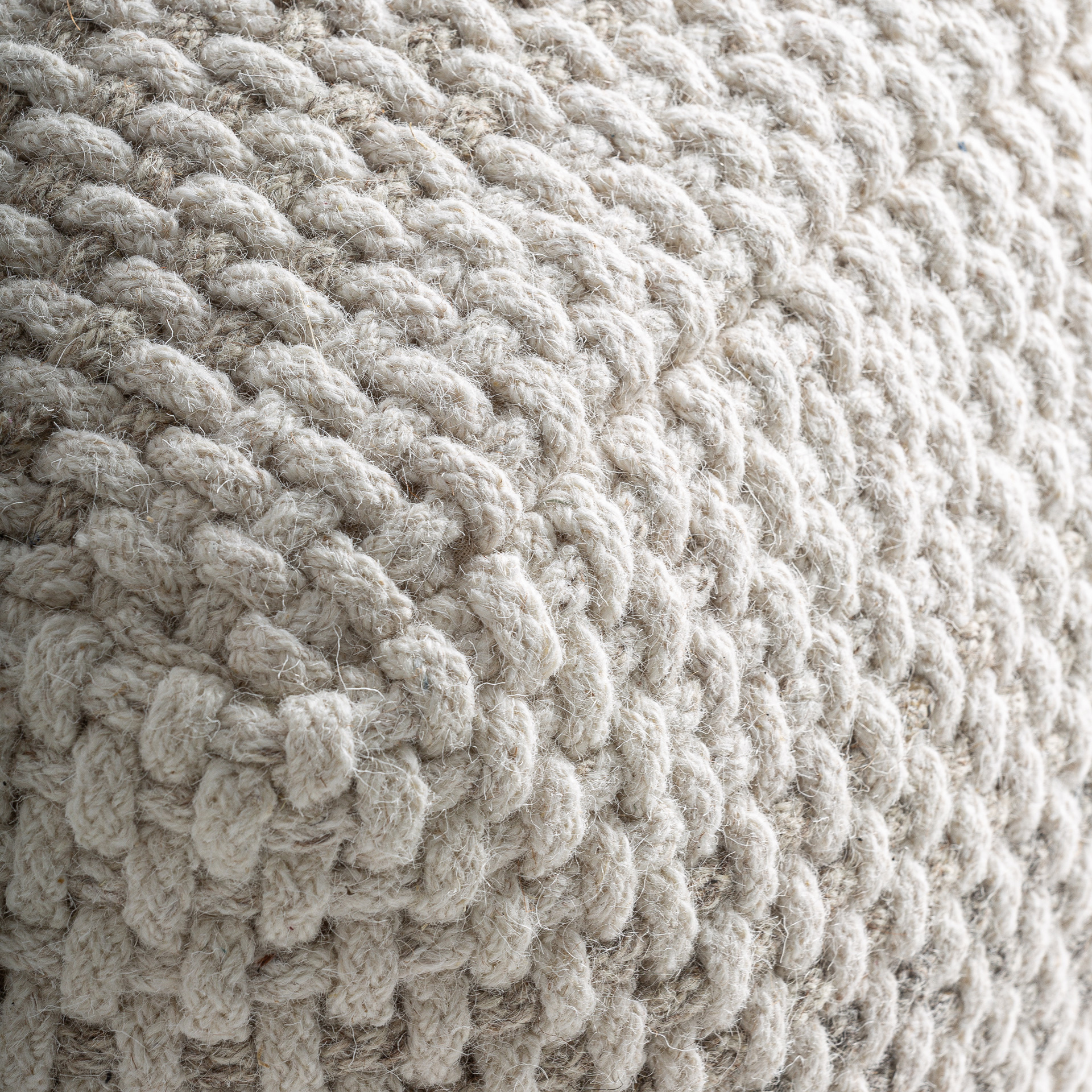 Пуф Koto в классическом стиле, выполнен из нежно-белой шерсти в сочетании с серым поролоном. Чехол съёмный. Ширина: 65 см, Глубина: 65 см, Высота: 33 см