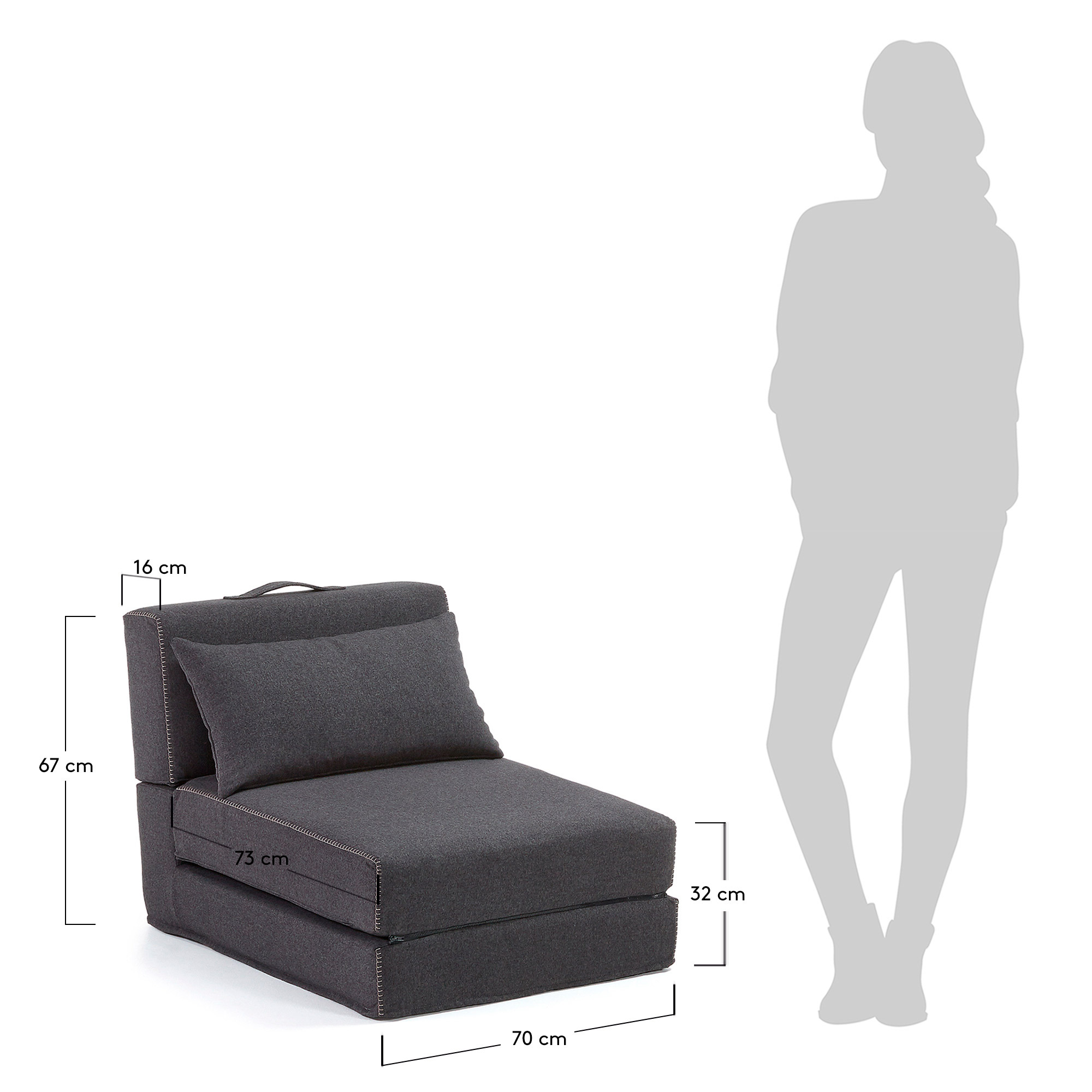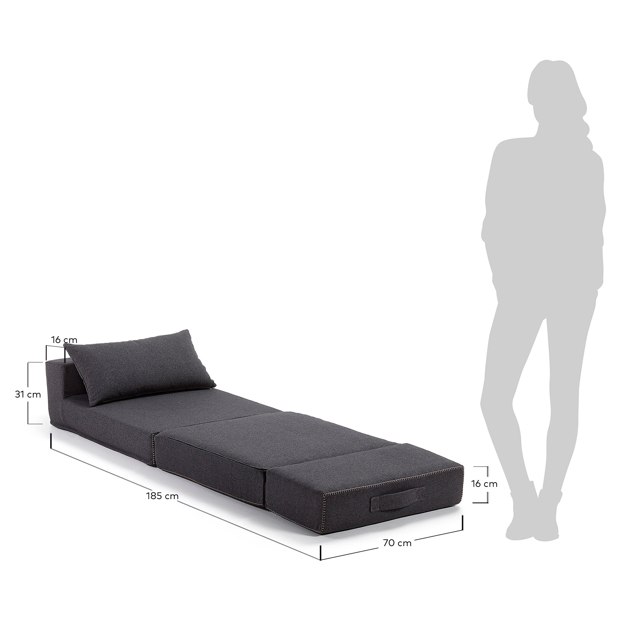 Пуф-кровать Arty из одноименной коллекции от фабрики La Forma (ex Julia Grup) — практичный предмет интерьера для экономии пространства. На эту мебель, безусловно, обратят внимание все, кому нужно дополнительное спальное место, но без ущерба для свободной площади комнаты. Пуф-кровать быстро раскладывается и собирается, имеет современный дизайн, современную цветовую гамму. Словом, эта модель — настоящая находка для небольшой квартиры. Изделие состоит из четырех соединенных между собой подушек высотой 16 см и одной отдельной для головы. Трансформация в спальное место и обратно осуществляется посредством гибких тканевых креплений между тремя подушками. Каждый элемент просто снимается друг с друга и укладывается на пол. Для удобства предусмотрена ручка сверху спинки. Внутри — синтетический наполнитель (пенополиуретан). Он прекрасно сохраняет форму, мягкий и упругий, не имеет запаха и не вызывает аллергии. Материал обивки — прочный текстиль с тефлоновым покрытием Varese. Оно сдерживает проникновение влаги, облегает чистку от загрязнений. Чехлы съемные. В зависимости от выбранной модели, обивка может быть синей, горчичной, розовой, серой, антрацитовой. Размер кровати: длина — 185 см, ширина — 70 см, высота — 67 и 32 см (в собранном виде, по спинке и сиденью).