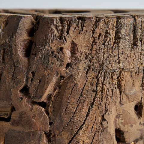 Пуф в этническом стиле, изготовленный из мангового дерева коричневого цвета с состаренной отделкой. Ширина: 25 см, Глубина: 25 см, Высота: 32 см
