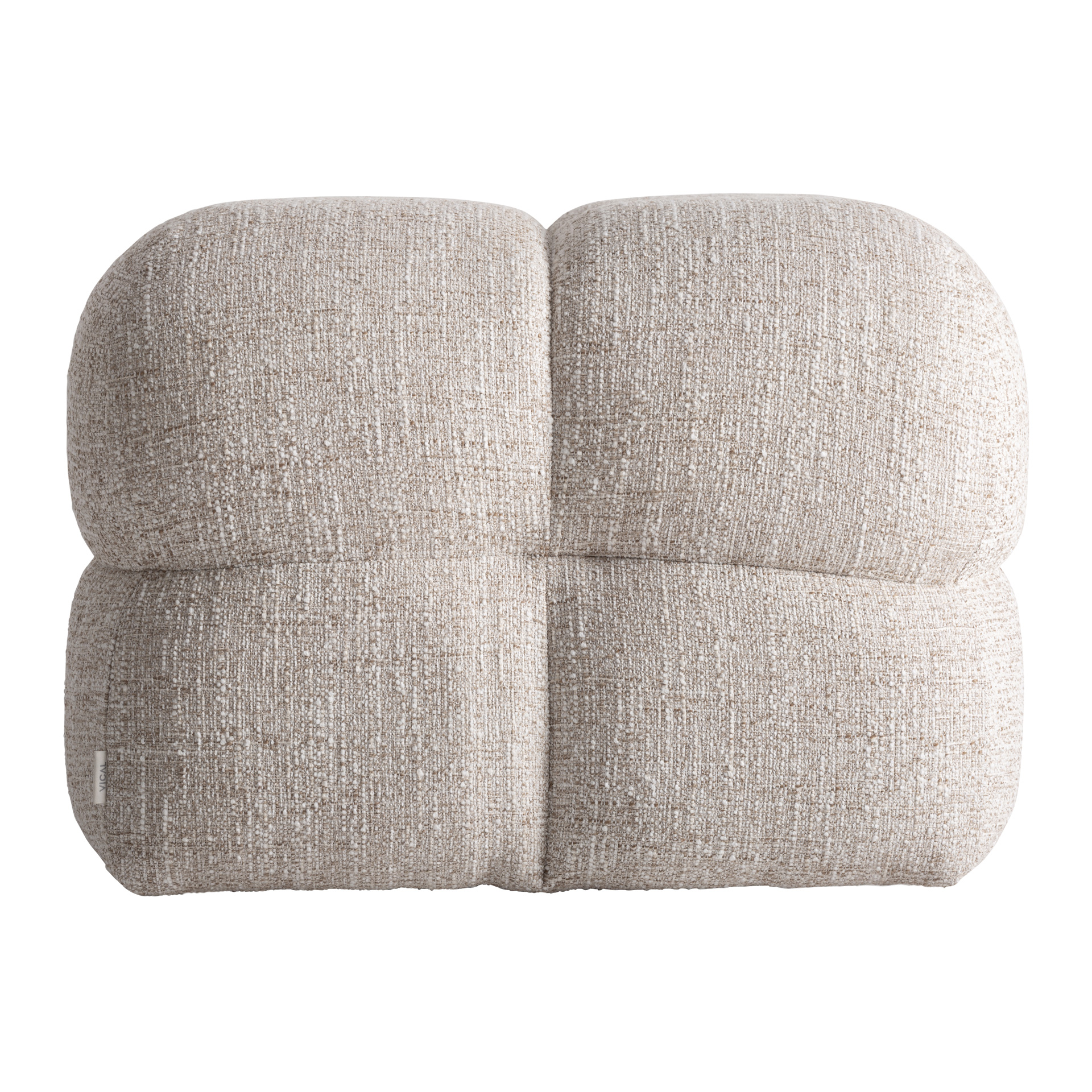 Современная подставка для ног Zizano, изготовленная из бежевого полиэстера с пятнистой текстурой в сочетании с фанерой и пенополиуретаном. Ширина: 60 см, Глубина: 60 см, Высота: 44 см