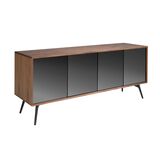 Сервант 1403M-NOGAL — завораживающие фасады и ретро дизайн от фабрики Angel Cerda. Сервант буквально притягивает взгляд своим магическим блеском черного стекла. Но эта яркая деталь — не единственная особенность данной модели. Здесь однозначно просматривается ретро дизайн, к которому и в наше время мало кто остается равнодушным. Сервант имеет традиционную прямоугольную форму, состоит из деревянного каркаса (МДФ и шпон орехового дерева) и четырех дверей из ударопрочного закаленного стекла. Каждая дверь оснащена доводчиком на открывание и закрывание. Они «посажены» в каркас таким образом, что не создадут неудобства при эксплуатации. Дерево, из которого изготовлен каркас, обладает особой прочностью и хорошо сочетается с любой цветовой гаммой. А черный цвет стекол добавляет изделию шарма и особой, магической красоты. Поддерживают сервант пять металлических ножек черного цвета. Четыре установлены традиционно — по одной с каждого угла, а пятая уравновешивает нагрузку, находясь в центре основания. Размеры серванта: ширина — 180 см, высота — 76 см, глубина — 50 см. Потребуется сборка. Крепеж, инструкция — в комплектации.
