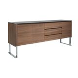 Деревянный сервант 191-М от фабрики Angel Cerda – полезный предмет мебели для городских интерьеров. Сервант 191-М впечатляет своим размером и продуманной эргономикой. Пожалуй, в нем поместится все, что мешает создать в дома идеальный порядок. Но вместительные ящики – это не единственное достоинство данной модели. Беспроигрышный для современных интерьеров цвет ореха и эффектная черная столешница подчеркнут вкус владельца, его знание модных тенденций. Сервант прямоугольной формы, имеет каркасную конструкцию. Сверху – столешница из матового черного стекла. Она ударопрочная, стойкая к высоким весовым нагрузкам. Все встроенные ящики оснащены мягкой системой открытия и закрытия. В конструкции предусмотрено три выдвижных ящика и три отсека с дверями. Материал изготовления каркаса и ящиков – МДФ и шпон орехового дерева. Опоры выполнены из хромированной стали. Они имеют рамочную конструкцию и поддерживают изделие с каждой стороны по всей глубине каркаса. Прочный металл обеспечивает надежность при эксплуатации, а большое расстояние между ножками обеспечивает равномерное распределение веса изделия. Масса серванта составляет 118 кг. Размеры: длина – 200 см, ширина – 50 см, высота – 81 см. Потребуется самостоятельная сборка. Инструкция и крепеж входят в комплектацию.