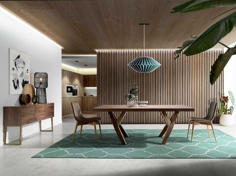 Сервант CP1702 от фабрики Angel Cerda — полезный и вместительный предмет мебели для вашего дома. Сервант моментально убеждает в своей эргономичности, а внешний вид просто восторгает. Все ящики и полости настолько органично спрятаны, что даже не подумаешь, насколько функционален может быть этот предмет мебели. Безусловно, к этому серванту стоит присмотреться. Изделие имеет строгую прямоугольную форму и конструкционно состоит из двух частей — большой тумбы и ножек, на которых она стоит. Сервант разделен на три секции вертикальными перегородками. Центральная часть отдана под два больших выдвижных ящика с установленными доводчиками, а слева и справа — полочные отсеки с дверцами. Особое внимание стоит уделить ручкам. Здесь они представляют собой углубления в столешнице напротив каждого отсека. Это стильно и функционально. Материал изготовления — шпонированный МДФ высокого качества. Цвет — коричневый с природным орнаментом. Такое изделие гармонично впишется в любой современный интерьер, так как полностью соответствует по европейскому модерну. Ножки удерживают изделие с каждого угла, тем самым, образуя большую площадь опоры. Это гарантирует хорошую устойчивость на любом покрытии. Размеры изделия: длина — 160 см, ширина — 40 см, высота — 80 см. В этой же коллекции также представлен туалетный столик, комод, прикроватная тумбочка.