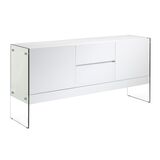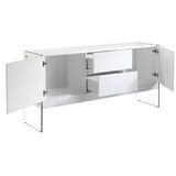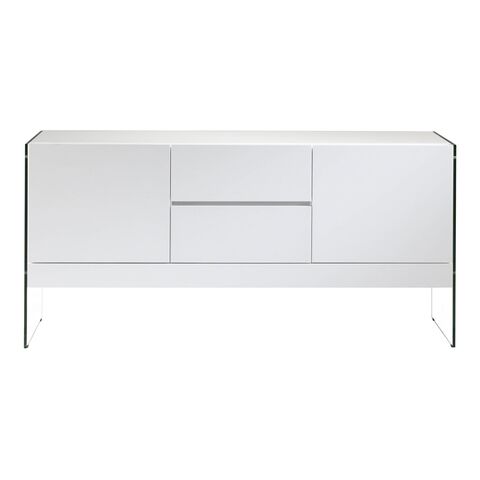 Сервант CP1410-E от фабрики Angel Cerda — беспроигрышный вариант для любого современного интерьера. С первого взгляда сервант убеждает в своей способности идеально вписаться в любой городской интерьер. Стеклянные опоры практически незаметны, за счет чего акцентируется только каркас. Сделанный из одного материала и простой по своей форме, он легко «подружится» с другими предметами интерьера в квартире с европейским модерном. Этот сервант представлен в двух моделях — BLANCO (выполнена из белого глянцевого МДФ) и NOGAL (произведена из шпона орехового дерева). Конструкция изделия предусматривает каркас, состоящий из четырех отделений. Справа и слева — две секции на дверцах, а в центре — два выдвижных ящика. Ручки отсутствуют, так как вместо них — доводчики на открывание и закрывание. По бокам к серванту прикручены две стойки из закаленного ударопрочного стекла. Каждая панель держится на четырех металлических крепежах, что обеспечивает надежность и прочность всей конструкции. Размеры серванта: ширина — 180 см, высота — 85 см, глубина — 45 см. Вес составляет 95 кг. Потребуется самостоятельная сборка. Инструкция и крепеж входят в комплектацию. Отделка - лак RAL9003 Glossy White.