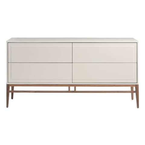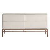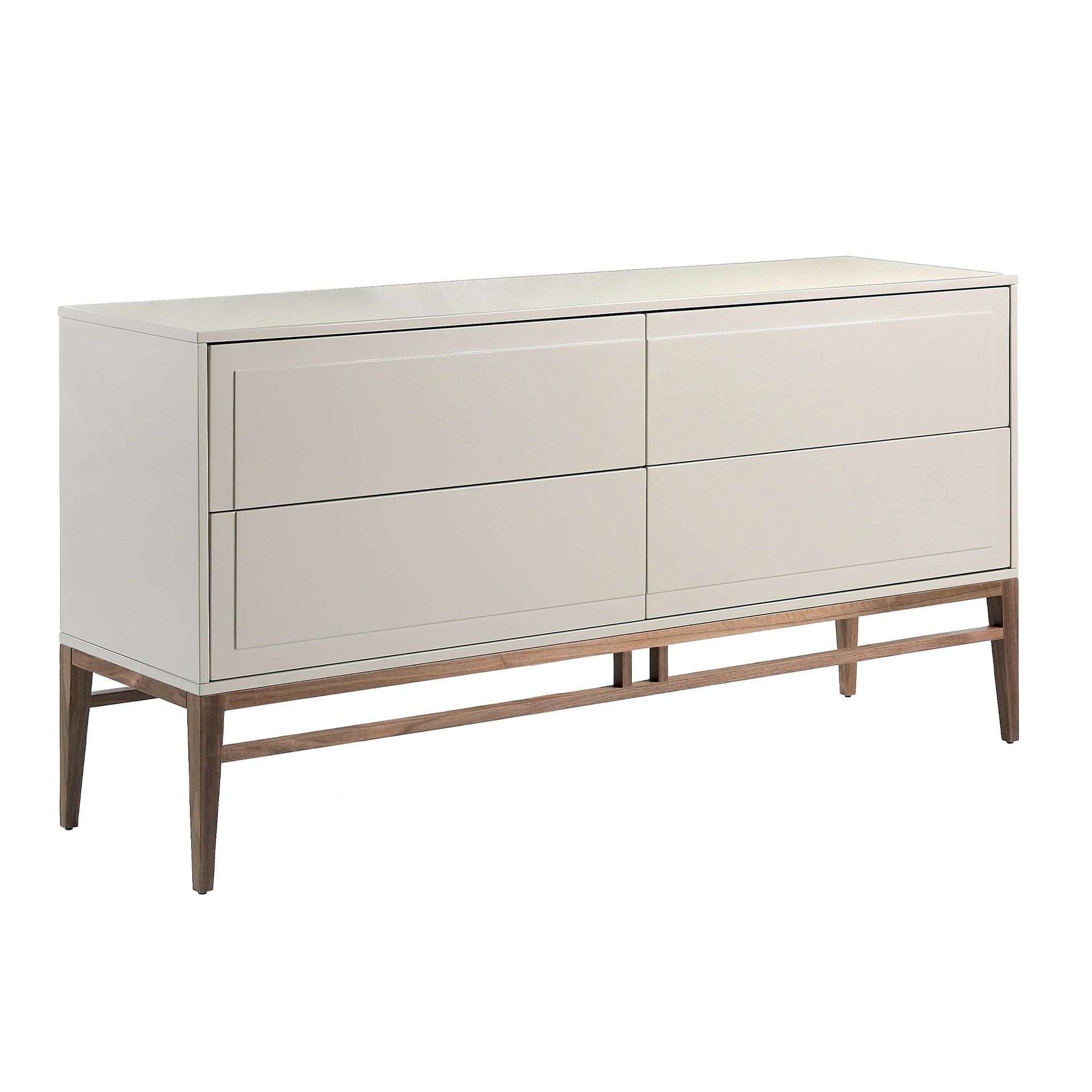 Сервант CP1709-C от фабрики Angel Cerda — лаконичный и универсальный дизайн, созданный для европейских интерьеров. Сервант выглядит очаровательно и аккуратно. Стройные деревянные ножки делают изделие грациозным, а эргономичные вместительные ящики станут идеальным местом хранения для посуды, домашнего текстиля, прочих предметов быта. Модель легко впишется в современный интерьер, особенно если в нем ценят традиционное европейское исполнение. Сервант прямоугольной формы, с четырьмя выдвижными ящиками одинакового размера. Для удобной и надежной эксплуатации ящики оснащены прочными металлическими направляющими и доводчиками на открывание и закрывание. Каркас и ящики сделаны из белого шпона, а на фасадах — декор из лакированного МДФ. Опора сделана из орехового дерева. Для прочности и устойчивости к высоким весовым нагрузкам, конструкция имеет дополнительную ножку в центре основания, а также оснащена поперечными перекладинами спереди и сзади. На каждой ножке предусмотрен металлический наконечник. Размеры серванта: длина — 160 см, высота — 80 см, глубина — 45 см. В коллекцию CP1706 также включены прикроватная тумбочка, туалетный столик, обеденный стол. Доставка изделия осуществляется в собранном виде. Отделка - лак RAL7044 Niebla Brillo.