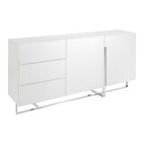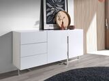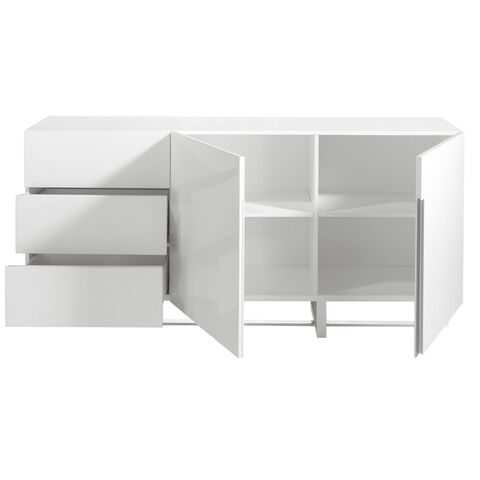Сервант Experiencia белый CP1302-E — дизайнерская модель для стильного городского интерьера от Angel Cerda. Сервант с первой секунды убеждает в том, что он создан для тех, кто разбирается в мебели. Эта модель выполнена абсолютно в полном соответствии с трендами европейского модерна. Глянцевые фасады, минималистичный дизайн, максимум места для хранения вещей. Изделие просто необходимо в городской квартире. Сервант имеет прямоугольную форму. Каркас визуально поделен на две половины. Слева — три выдвижных ящика одинаковой высоты, а справа — распашные двери, за которыми четыре полки одинакового размера. Ручки отсутствуют, вместо них предусмотрены доводчики. Материал изготовления — высококачественный шпон белоснежного цвета с лаковым покрытием. Этот материал прочный, модный, легко сочетается с любой цветовой гаммой. На переднем фасаде (правая дверь) — металлическая рейка. Она в точности внешне соответствует опоре, отчего создается зрительный обман, будто ножка врезана в деревянную панель. Опора имеет сложную рамочную конструкцию. Она поддерживает сервант вдоль и поперек, отчего обеспечивается надежность и устойчивость конструкции. Прочность металла — гарантия выдерживать высокую весовую нагрузку. Размеры серванта: ширина — 180 см, высота — 85 см, глубина — 42 см. Изделие поставляется в разобранном виде. Для сборки предусмотрен крепеж, инструкция. В коллекцию Experiencia также включены прикроватная тумбочка, комод. Отделка - лак RAL9003 White Glossy.