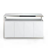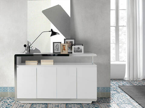 Сервант F6082 — минималистичный дизайн для ультрасовременной квартиры от фабрики Angel Cerda. Сервант выглядит стильно, технологично, современно. Его лакированные фасады демонстративно упорядочены толстой хромированной рамой-полкой. Именно она добавляет экстерьеру изделия оригинальности, отвечает за принадлежность к стилю хай-тек. Это изделие явно не оставит равнодушными тех, кто привык жить в ногу со временем, тех, чья мебель должна соответствовать самым высоким стандартам современного стиля. Сервант прямоугольной формы, выполнен из лакированного МДФ. Каркас поделен на два отделения одинаковой площади, которые закрываются двустворчатыми дверями. Они оснащены доводчиками на открывание и закрывание. Внутри отделений предусмотрено по одной горизонтальной полке (площадь делится на две части). Высоту полки можно выбрать самостоятельно (в перегородках предусмотрено несколько пар отверстий для крепежа разной высоты). Обрамляет каркас толстая металлическая рама (хромированная сталь). Ее конструкция не только уравновешивает изделие, но и добавляет эргономики — верхняя панель может служить в качестве полки. Опирается сервант на толстую панель из МДФ, в тон к основному материалу изготовления. Благодаря большой площади опоры, эта модель устойчива на любом напольном покрытии, выдерживает высокую весовую нагрузку. Размеры серванта: длина — 140 см, высота — 85 см, глубина — 40 см. Вес составляет 93 кг. Изделие доставляется в собранном виде, за исключением внутренних полок, которые потребуется поставить самостоятельно. Отделка - лак RAL9003 Gloss White.