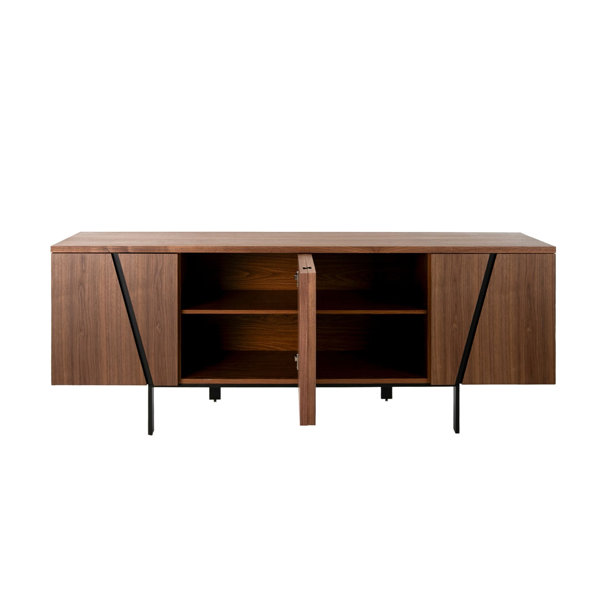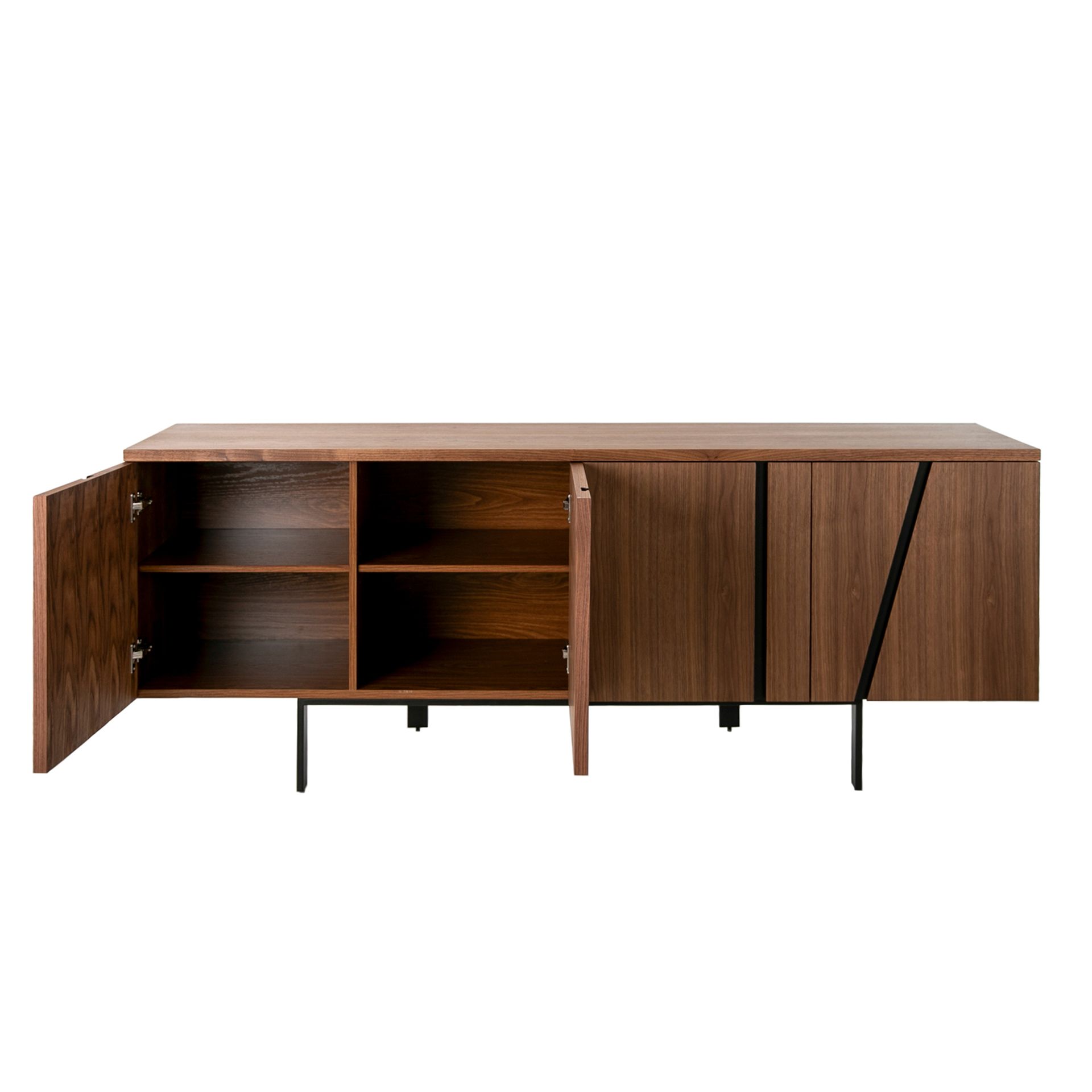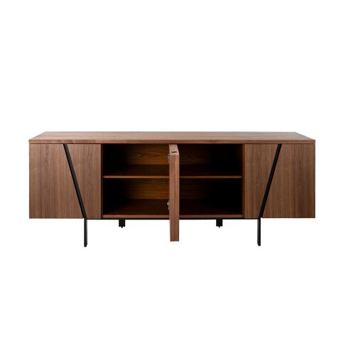 Сервант MK1910SB /3124 от фабрики Angel Cerda – вместительность и безупречная отделка из шпона американского ореха. Сервант MK1910SB /3124 – вместительный и современный элемент мебели для вашей гостиной. Облицовка из шпона американского ореха в сочетании с гладкой фактурой фасадов придает изделию яркий и эффектный вид, который точно преобразит пространство. Вы точно полюбите эту мебель за демонстрацию стиля и эргономичность. Сервант MK1910SB /3124 состоит из прямоугольного каркаса с двумя секциями хранения и металлической стойки. Каждая секция поделена на четыре ячейки для хранения, имеет две распашные двери с мягкой системой открытия. Материал изготовления каркаса – древесина ясеня. Сверху ясень отделан шпоном ореха. Металлическая стойка окрашена в черный цвет эпоксидной смолой. Это матовое покрытие придает серванту элегантный вид и обеспечивает защиту от влаги и других внешних воздействий. Для улучшения устойчивости на каждой ножке установлен наконечник. Размеры: ширина – 191 см, высота – 74 см, глубина – 50 см. Вес составляет 72 кг. Потребуется минимальная сборка. Инструкция и крепеж включены в комплектацию.