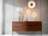 Сервант CP1410-E от фабрики Angel Cerda — беспроигрышный вариант для любого современного интерьера. С первого взгляда сервант убеждает в своей способности идеально вписаться в любой городской интерьер. Стеклянные опоры практически незаметны, за счет чего акцентируется только каркас. Сделанный из одного материала и простой по своей форме, он легко «подружится» с другими предметами интерьера в квартире с европейским модерном. Этот сервант представлен в двух моделях — BLANCO (выполнена из МДФ с белым глянцевым покрытием) и NOGAL (произведена из шпона орехового дерева). Конструкция изделия предусматривает каркас, состоящий из четырех отделений. Справа и слева — две секции на дверцах, а в центре — два выдвижных ящика. Ручки отсутствуют, так как вместо них — доводчики на открывание и закрывание. По бокам к серванту прикручены две стойки из закаленного ударопрочного стекла. Каждая панель держится на четырех металлических крепежах, что обеспечивает надежность и прочность всей конструкции. Размеры серванта: ширина — 180 см, высота — 85 см, глубина — 45 см. Вес составляет 95 кг. Потребуется самостоятельная сборка. Инструкция и крепеж входят в комплектацию.