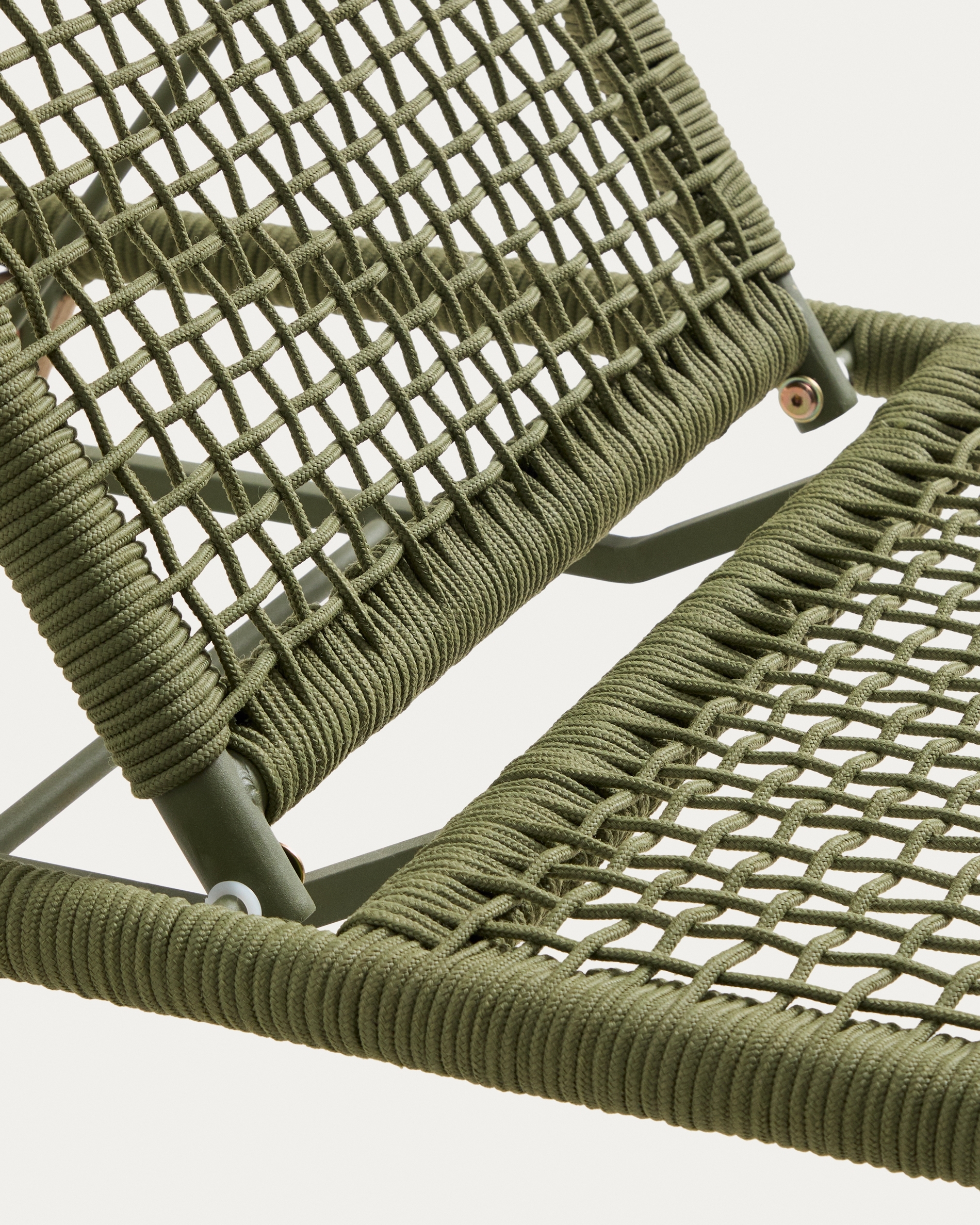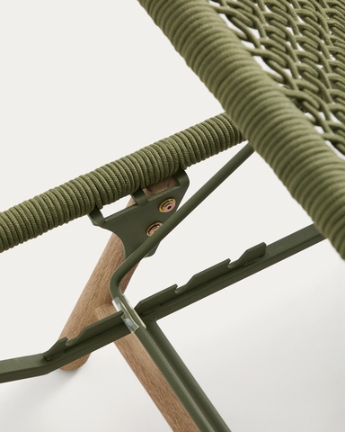 Шезлонг Dandara из зеленой стали и веревки на ножках из массива акации