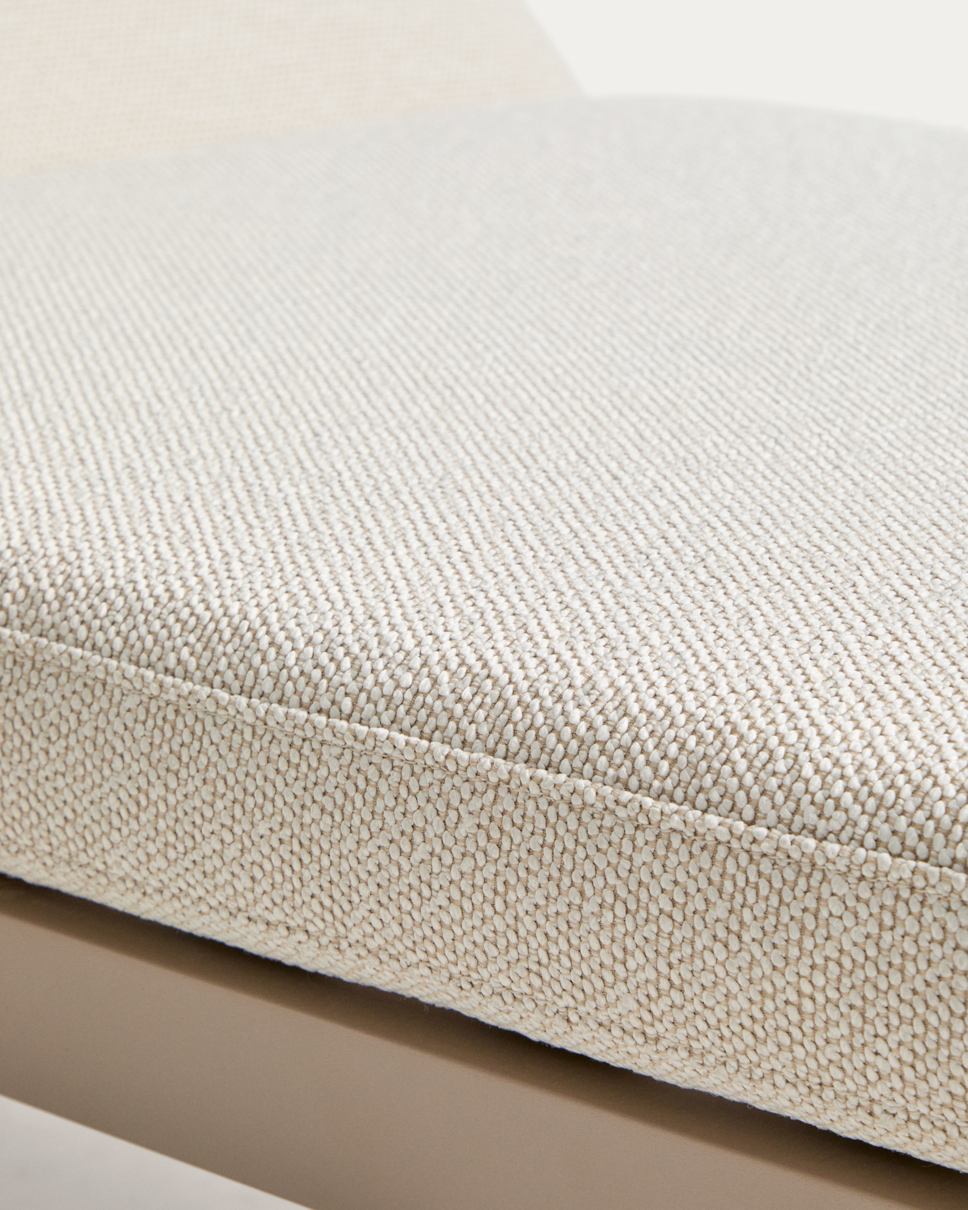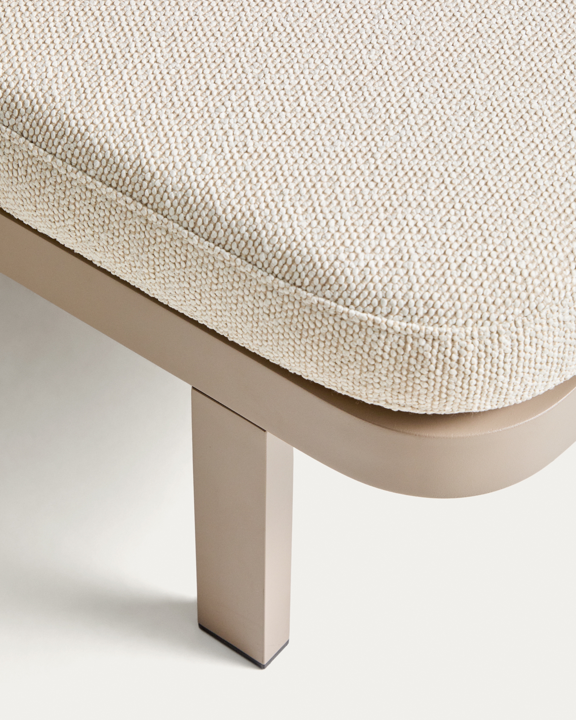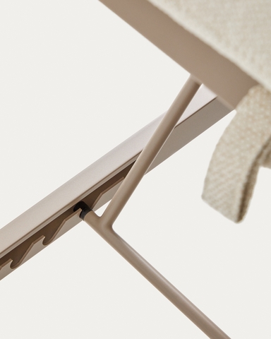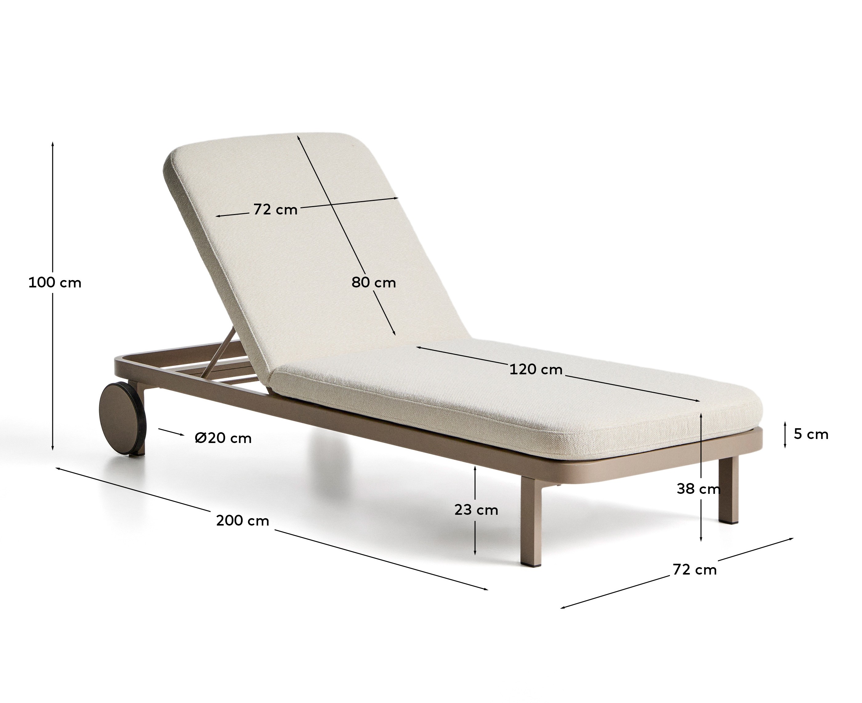 Шезлонг Kionia имеет прочную, но легкую алюминиевую конструкцию, разработанную для удобной транспортировки и использования на открытом воздухе. Подушки со съемными чехлами обеспечивают комфорт и практичность. Мы рекомендуем убирать их на хранение в дождливые дни, чтобы сохранить ткань в хорошем состоянии. Спинка имеет четыре положения, позволяющие отрегулировать положение для более комфортного отдыха. Колесики на основании облегчают перемещение и позволяют адаптировать шезлонг к месту установки в зависимости от потребностей пространства.