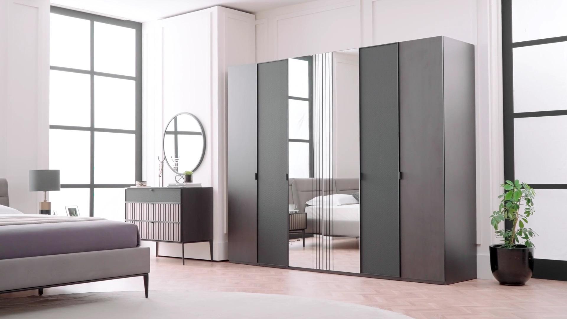 6-дверный гардероб дверями Riga отлично сочетается со всеми предметами из коллекции корпусной мебели Riga.