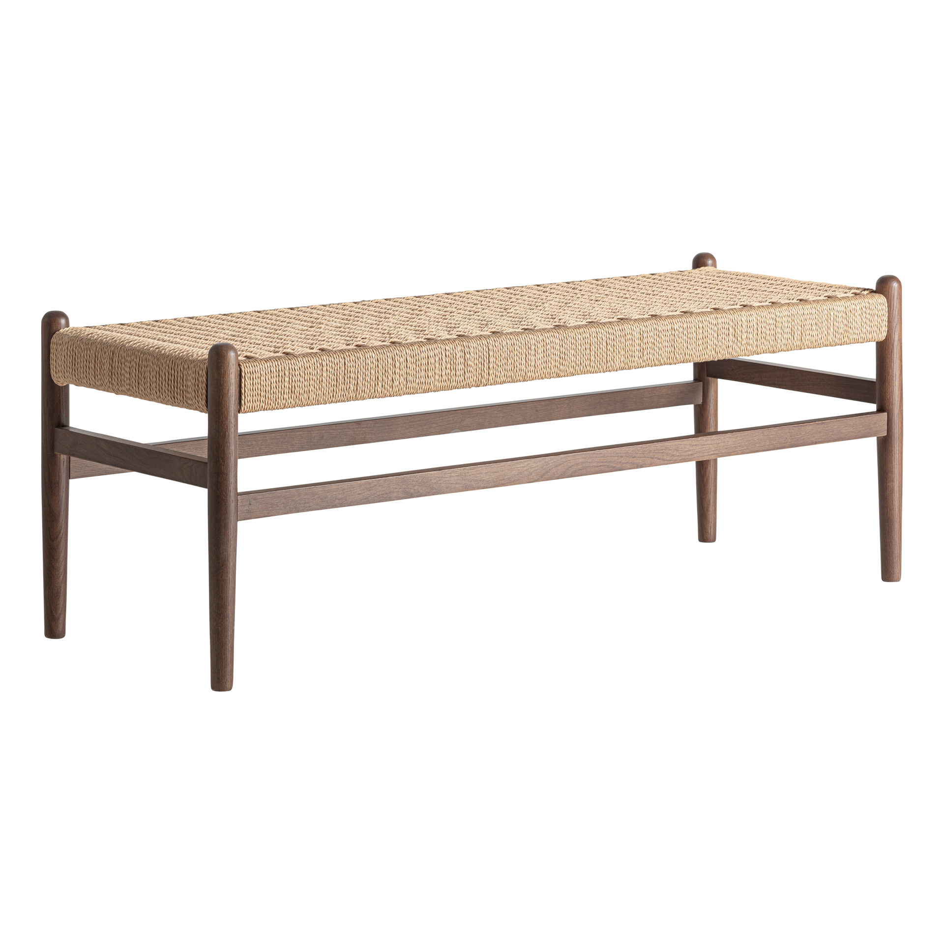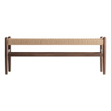 Современная скамья Flaeh, изготовленная из букового дерева коричневого цвета в сочетании с натуральным волокном. Ширина: 120 см, Глубина: 45 см, Высота: 45 см