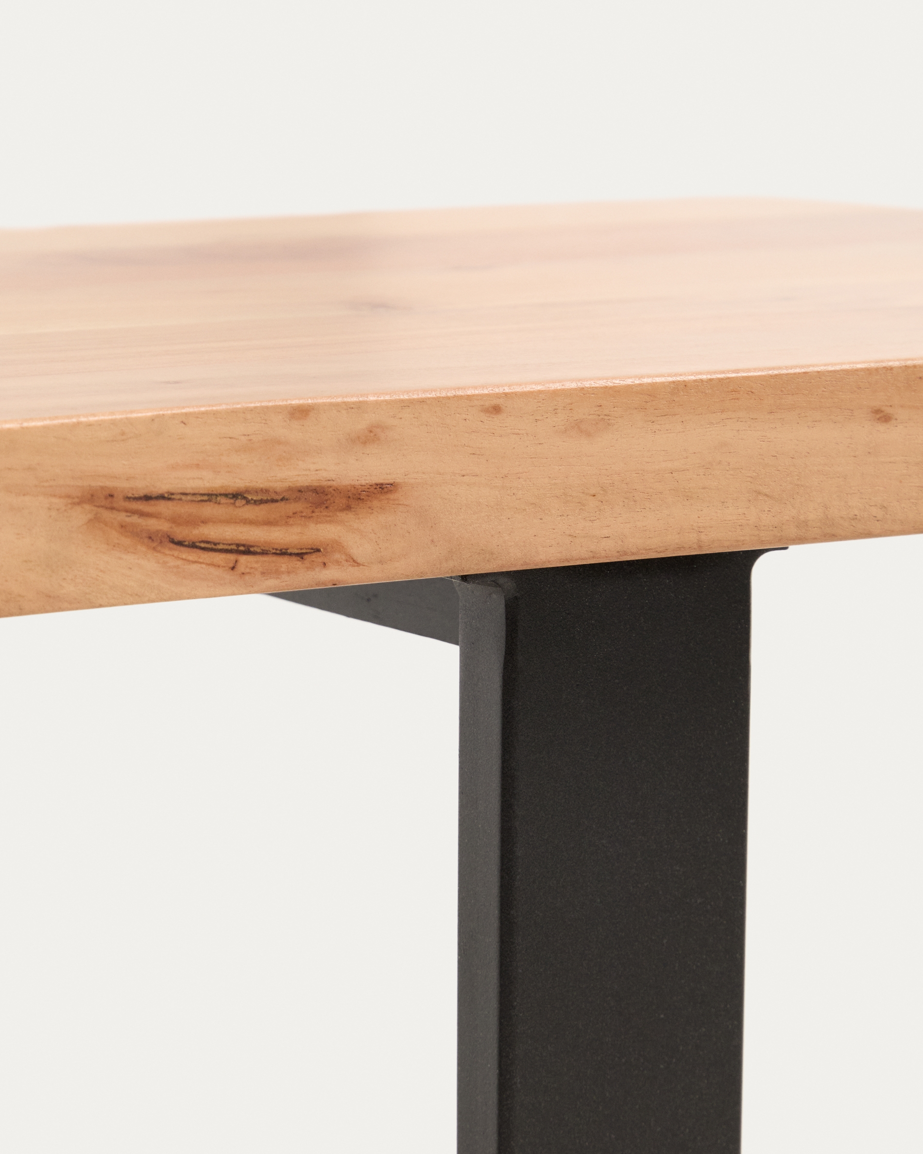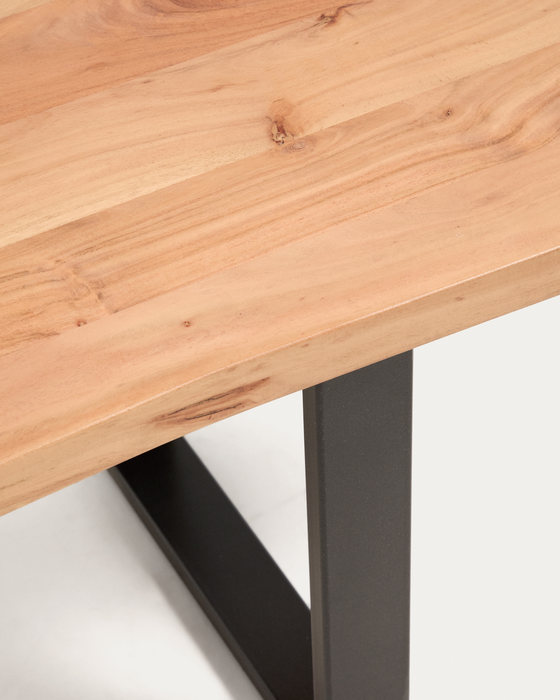 Коллекция Uxue переосмысливает функциональность и стиль благодаря массиву акации, который излучает тепло и подчеркивает естественную текстуру материала. Стальные ножки с черным порошковым покрытием обеспечивают устойчивость. Они также оснащены регулируемыми ножками, позволяющими устанавливать высоту и компенсировать неровности пола, обеспечивая надежную опору при повседневном использовании.