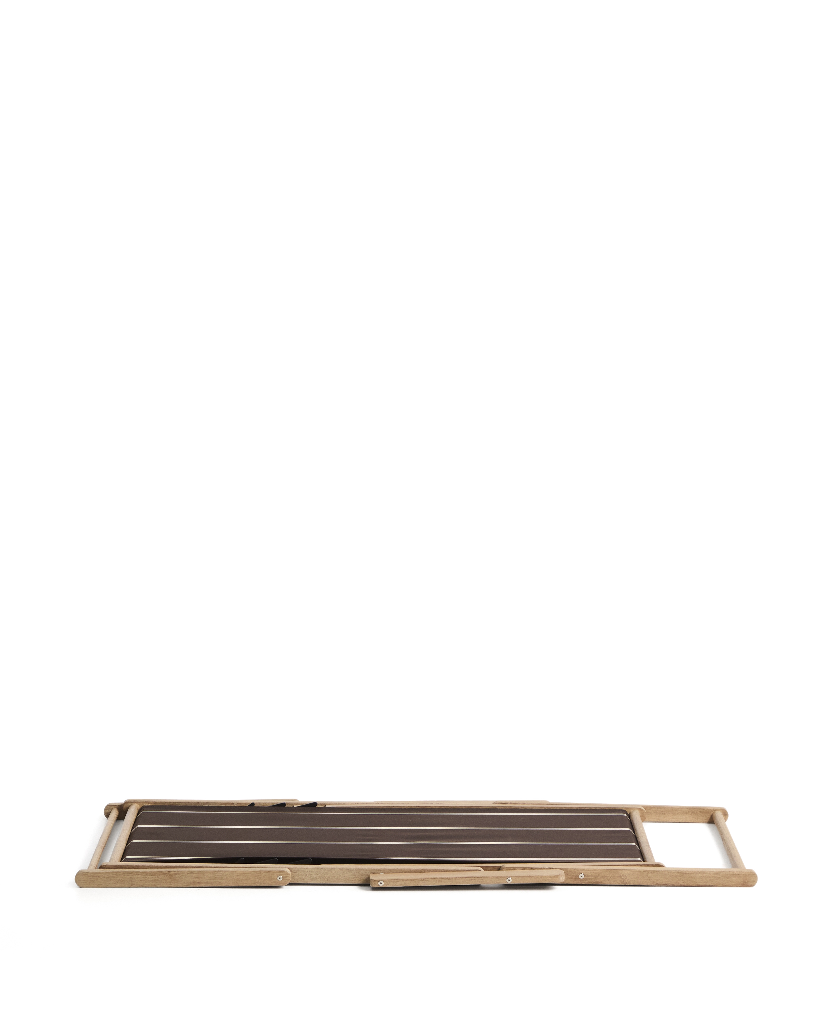 Складной шезлонг с подлокотниками — идеальное сочетание практичного дизайна и естественной эстетики для наслаждения отдыхом на природе. Его конструкция, выполненная из массива акации с матовой отделкой, выделяется своими уникальными оттенками и текстурой, придавая каждому изделию неповторимый шарм. Древесина сертифицирована по стандарту FSC™ 100% цепочки поставок, что подтверждает ответственное лесопользование. Спинка и сиденье изготовлены из высокопрочной ткани, рассчитанной на эксплуатацию на открытом воздухе.