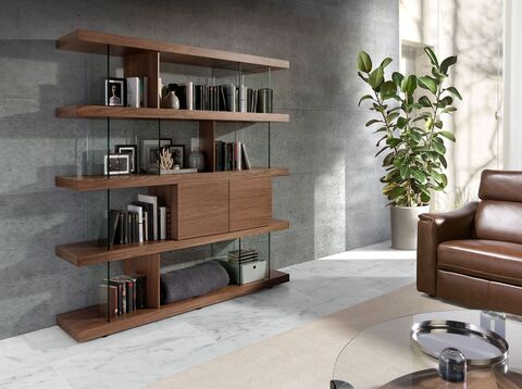 Стеллаж CP1711-F от фабрики Angel Cerda — минималистическая стенка для нужных вещей. Стеллаж однозначно заслуживает внимания. Он станет отличной альтернативой стенке, которая занимает много места и часто остается наполовину пустой. А в этой модели широкие и длинные полки вместят все необходимое красиво и удобно. Одним словом, стеллаж станет удачным приобретением для тех, кому нужно разместить много вещей, но при этом сохранить максимум свободного пространства в помещении. Данный предмет мебели — стопроцентное воплощение европейского модерна. Лаконичный и стильный дизайн, качественные материалы и теплый древесный цвет, уместный в любом интерьере. Ставить его лучше всего к стене, так как он сквозной лишь частично. В центре — два вместительных ящика. Они легко открываются и закрываются от доводчиков, поэтому не имеют ручек. Роль каркаса и ограничителей выполняют стеклянные стенки. Они прочные и ударостойкие. У стеллажа пять полок, все они равноудалены друг от друга. Основной материал изготовления — МДФ и шпон из орехового дерева. Конструкция не предполагает ножек, поэтому стеллаж стоит на нижней полке. Но это не значит, что ее нельзя использовать по назначению. Размеры — 180 см ×38 см × 190 см (ширина, глубина, высота). Вес — 161 кг. Стеллаж поставляется в разобранном виде (4 коробки). В комплект включен крепеж и инструкция по сборке. Установку не рекомендуется проводить одному человеку, ввиду большого веса изделия.