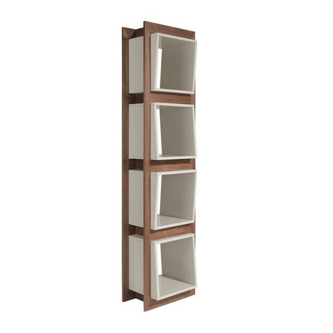Стеллаж Equilibrio из одноименной коллекции от фабрики Angel Cerda — необыкновенный внешний вид и небольшие габариты. Стеллаж сразу привлекает внимание своим удивительным дизайном. Он как будто сборный: в деревянный каркас вставлены ящики. Кажется, что стоит потянуть за любой, и он вытащится. Усиливают это ощущение и неровные грани, гармошкой выступающие наружу. Данный предмет мебели станет удачным приобретением для обустройства помещения, выполненного в современном стиле. Благодаря небольшим габаритам, его можно будет определить в любую комнату. Стеллаж сквозной, поэтому его можно ставить не только фронтально к стене, но и боком. Интересно обыграют интерьер сразу два стеллажа, поставленные на небольшом расстоянии друг от друга посередине стены. Конструкция состоит из каркаса и полок, которых всего четыре. Благодаря дизайнерскому замыслу, полки выглядят так, словно это ящики, вставленные в ячейки. Боковые грани разной длины, поэтому они выступают под углом из своих «отсеков». Стеллаж полностью выполнен из качественных деревянных материалов. Каркас — это ореховый шпон, а ящики — мдф, покрытые белой или желтой краской (зависит от модели). Размеры — 50 см × 200 см × 41 см (ширина, высота, глубина). Вес — 43 кг. Изделие приходит в разобранном виде вместе с инструкцией по сборке и крепежом. Отделка полок - лак RAL7035 Perla Brillo.