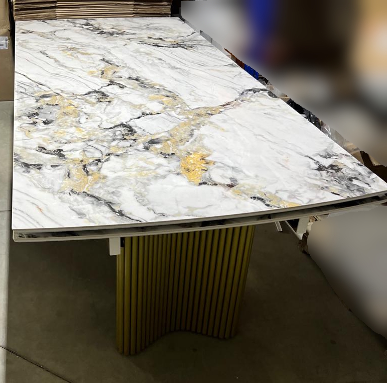 Стол АДАЖИО-2 240 (320) см цвет АРКТИКА (ARCTIC OCEAN), керамика / Золотой каркас