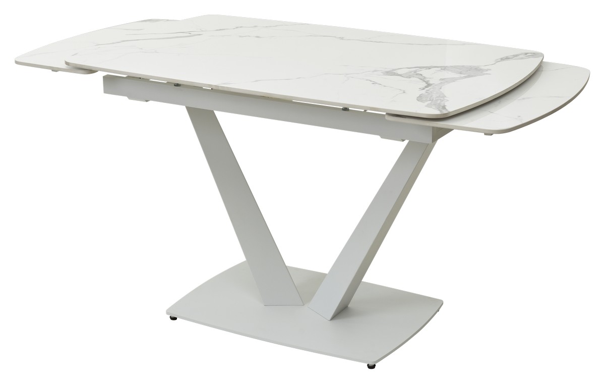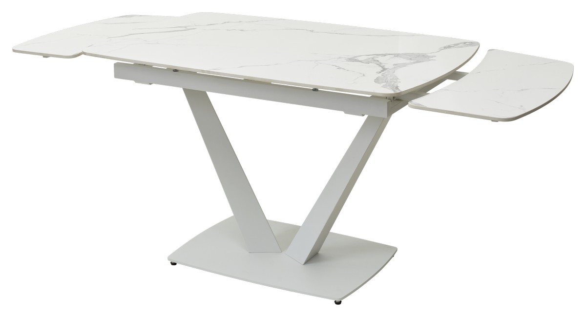 Стол АЛАТРИ (ALATRI) 120 с глянцевой керамической столешницей белый мрамор на белом каркасе