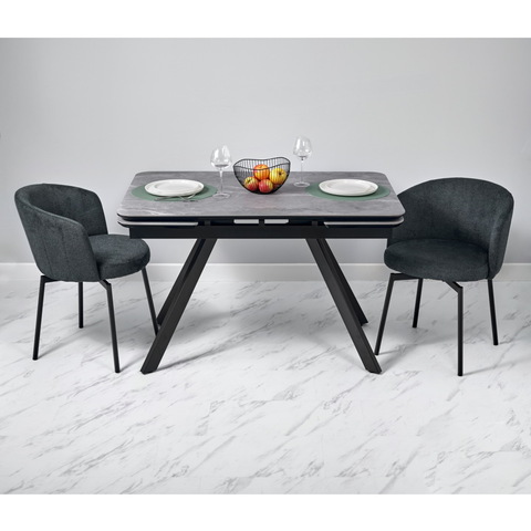 Стол Arthur раскладной 120-184x80x75см, керамогранит серый мрамор Greys Grey, чёрный