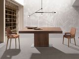 Стол Atemporal от фабрики Angel Cerda — могущественный внешний вид для важных персон. Стол впечатляет своими внушительными габаритами, которые присутствуют буквально во всем. Здесь раздвижная столешница небывалой толщины, а мощная стойка занимает примерно четверть всей площади. Такая модель заинтересует тех, кто не любит размениваться по мелочам, и если стол, то обязательно большой и статусный. Данная модель создана для больших помещений, в которых преобладает деревянная мебель. Интерьер лучше всего подойдет в эко-стиле или скандинавском. Стол полностью сделан из дерева. Столешница — из МДФ и шпона высокого качества, раздвижная. Чтобы ее удлинить, нужно потянуть за края и извлечь из центра дополнительную секцию. Стойка также выполнена из шпонированного МДФ. Она расположена в самом центре стола, обеспечивая хорошую устойчивость и стойкость к высоким нагрузкам. Для более ровного соприкосновения с поверхностью пола предусмотрена металлическая подложка. Она выступает за границы стойки, увеличивая площадь опоры. Размеры — 180×100×75 (длина, ширина, высота). Вес стола составляет 87 кг. Изделие поставляется в разобранном виде (два места). Сборка не займет много времени, так как инструкция и необходимый крепеж входят в комплектацию.