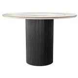 Стильный нераздвижной стол Aura – идеальное сочетание элегантности и функциональности. Стол Aura обладает глянцевой премиальной круглой столешницей из керамики, имитирующей белый мрамор, диаметром 110 см.
