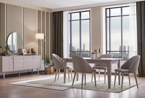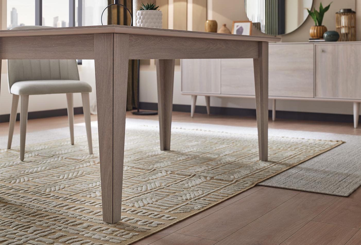 Благодаря сочетанию текстуры светлого дуба и современного дизайна стол подчеркивает элегантность и простоту пространства.