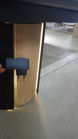 • основание стола - металл, цвет - черный+ МДФ в пленке в цвете Дуб Американский, встроенная подсветка с аккумулятором и зарядкой, включается пультом;