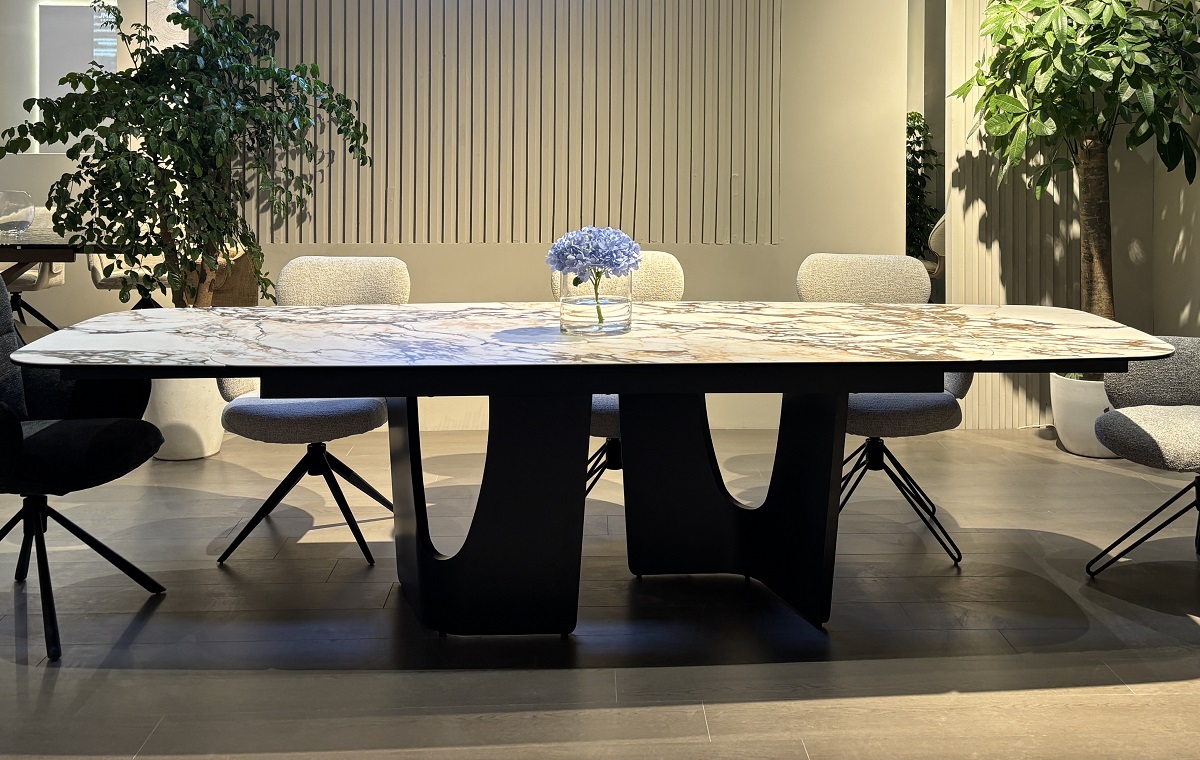 Стол BIRGER 200 итальянская керамика на стекле в цвете контрастный мрамор