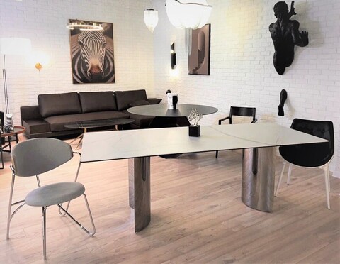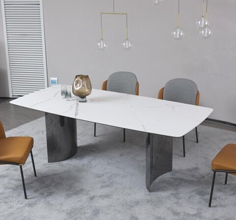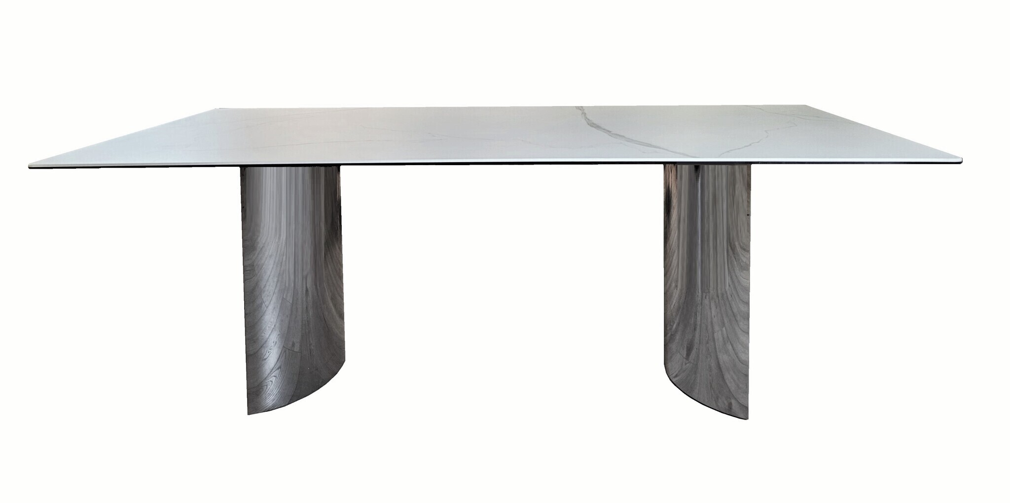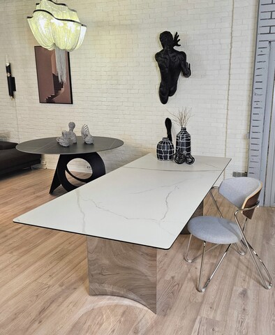Изящная геометрия двух полукруглых вертикальных опор наполнена элегантностью и подчеркивают особую композицию стола. Великолепное сочетание эстетики и качества стола добавит в интерьер нотки минималистичной роскоши.