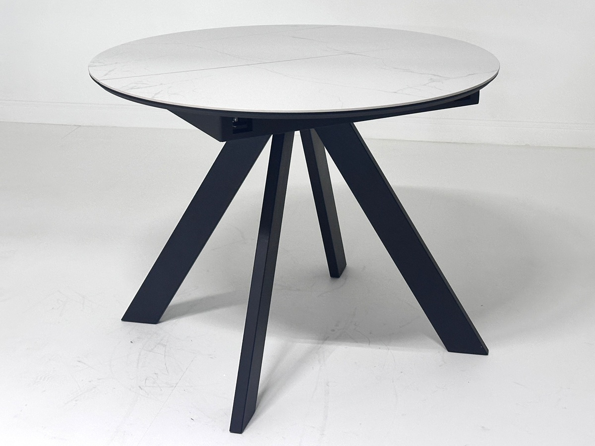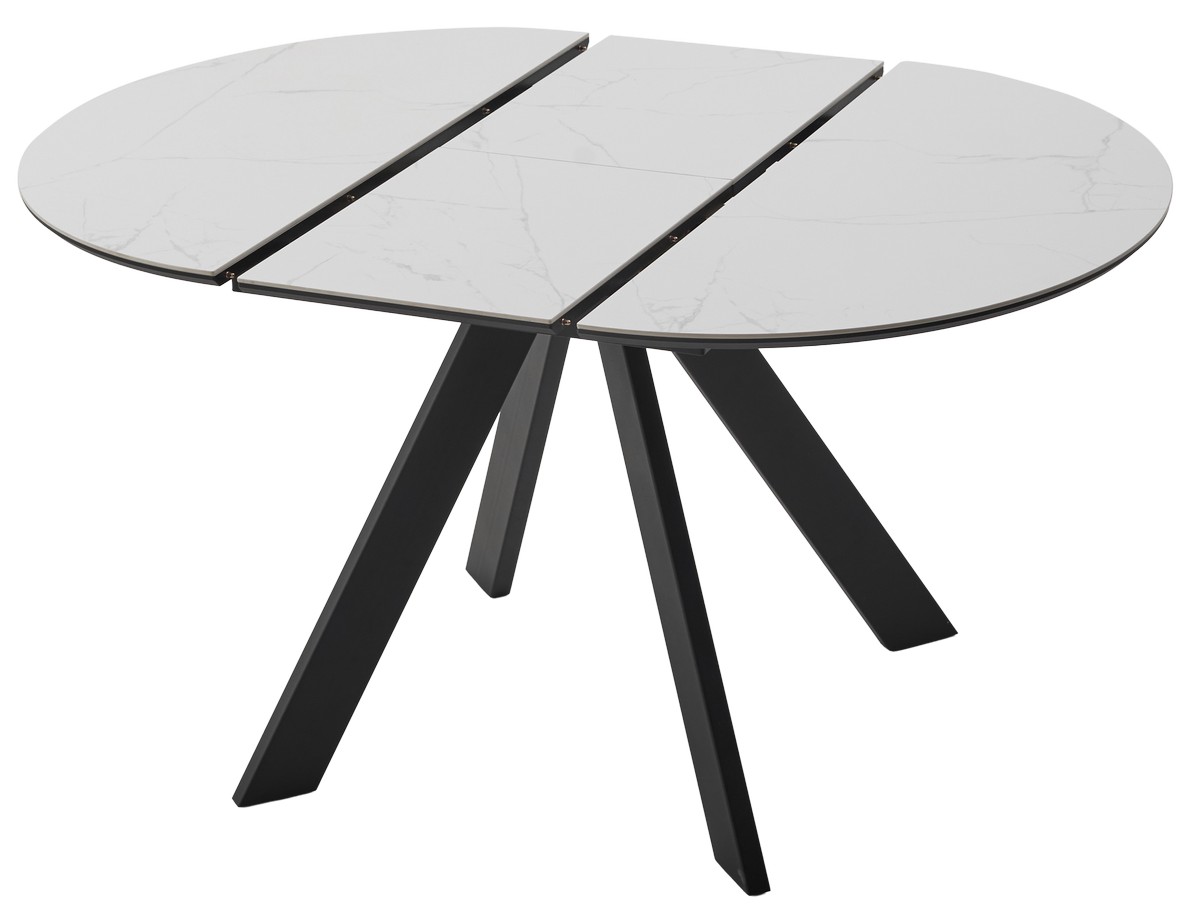 Стол БОНЖУР 100 цвет БЕЛЫЙ МРАМОР, керамика / ЧЕРНЫЙ каркас