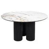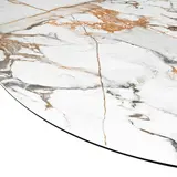 Стильный нераздвижной стол Aura – идеальное сочетание элегантности и функциональности. Стол Aura обладает глянцевой премиальной круглой столешницей из керамики, имитирующей белый мрамор, диаметром 110 см.