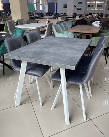Стол BRICK M 140 ламинированный в цвете Бетон Портленд на белом каркасе