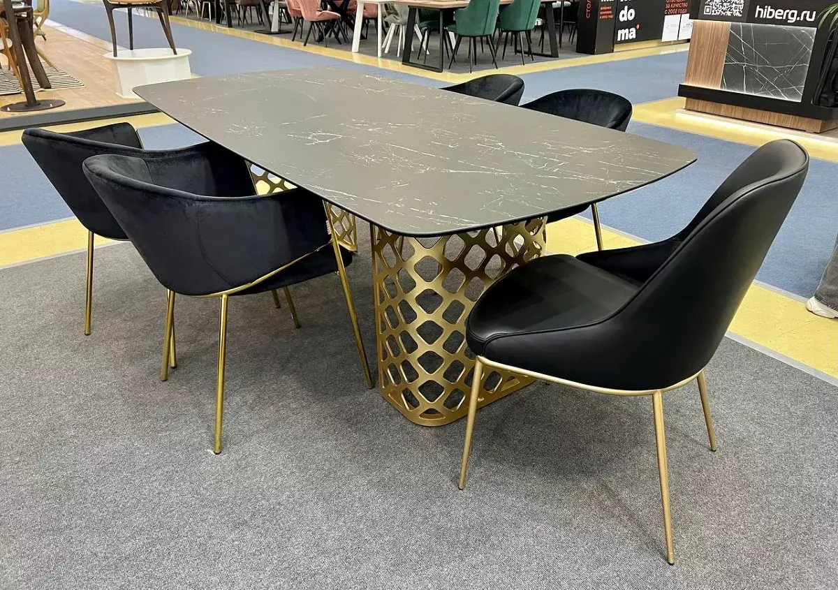 Стол дизайнерский CHIAVARI 220 с матовой керамической столешницей черный мрамор