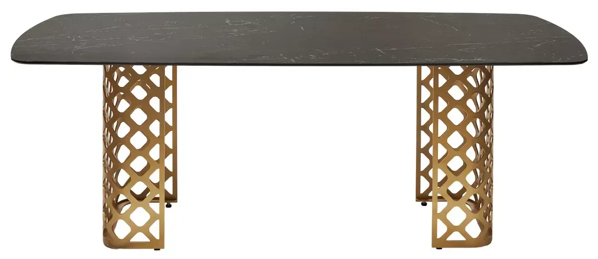 Стол CHIAVARI 220 KL-116 Черный мрамор матовый, итальянская керамика / бронзовый, ®DISAUR