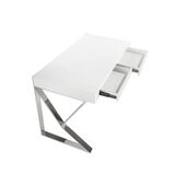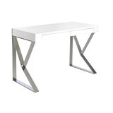 Стол Confort из одноименной коллекции от фабрики Angel Cerda — впечатляющие ножки для стильного городского интерьера. Стол моментально привлекает внимание своими оригинальными ножками. Сложная рамочная конструкция выглядит эффектно и, при этом, убеждает в хорошей устойчивости изделия. Прямоугольная столешница выполнена в минималистическом стиле. Ящиков почти не видно, ничто не отвлекает от работы. Стол имеет традиционную прямоугольную форму. Столешница сделана из толстого МДФ высокого качества. В зависимости от выбранной модели, ее цвет может быть белым глянцевым, либо цветом «орех». Спереди два одинаковых выдвижных ящика. Они снабжены доводчиками на открывание и закрывание, а также прочными металлическими направляющими, гарантирующими долгую эксплуатацию без поломок. Стойка сделана из хромированного металла. Этот материал прочный и долговечный, поэтому данная модель способна выдерживать высокие весовые нагрузки. Рамочная конструкция обеспечивает большую площадь опоры, поэтому стол будет устойчив на любом напольном покрытии. Модель выполнена в современном стиле, поэтому отлично впишется в городской интерьер, где приветствуются европейские тенденции. Размеры: длина — 120 см, глубина — 61 см, высота — 76 см. Потребуется несложная сборка. Инструкция и крепеж — в комплекте. Отделка - лак RAL9003 White Gloss.