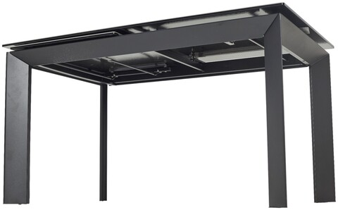• основание стола - металл, цвет - черный, ножки стола расположены по углам столешницы под углом;