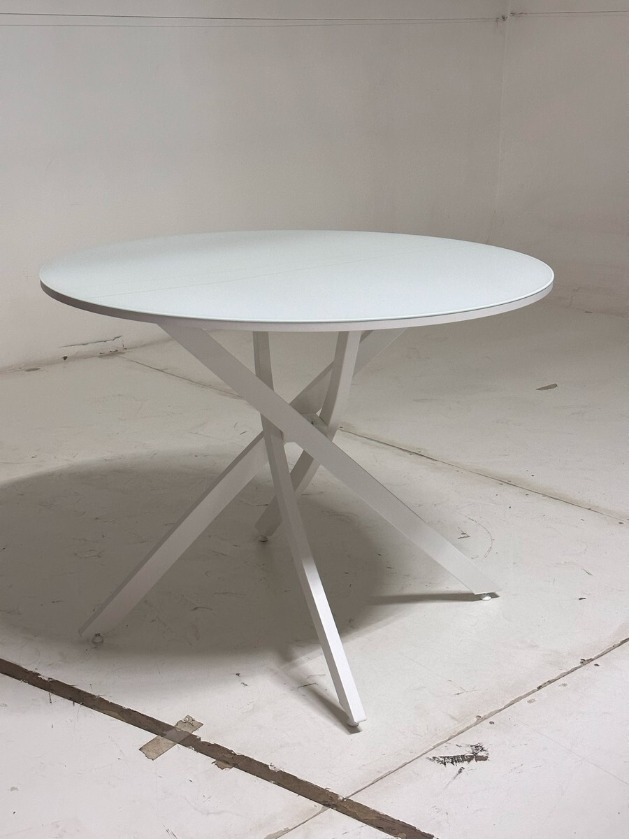 Стол ДАРИО D100 Белый, стекло/ Белый каркас М-City