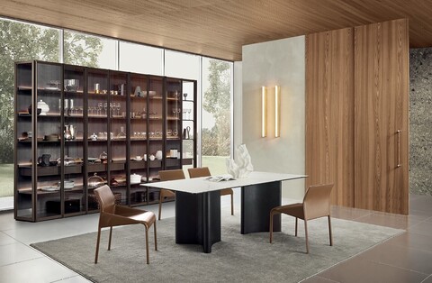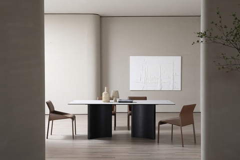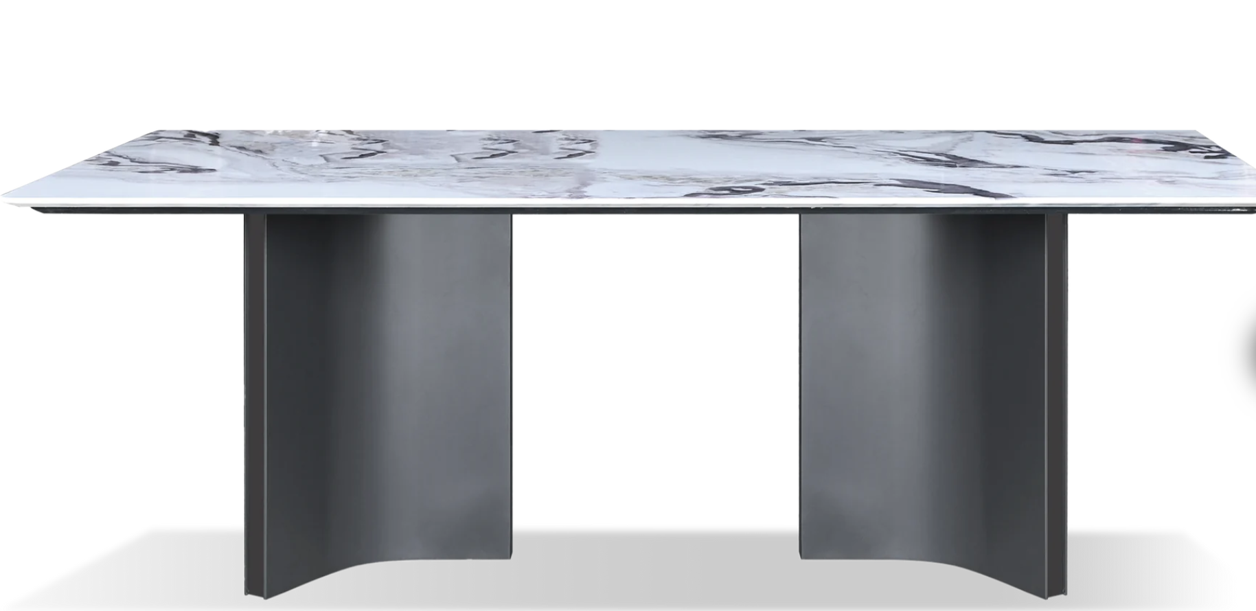Изящная геометрия двух вертикальных опор наполнена элегантностью и подчеркивают особую композицию стола. Великолепное сочетание эстетики и качества стола добавит в интерьер нотки минималистичной роскоши.