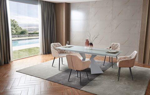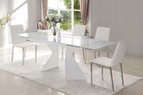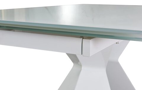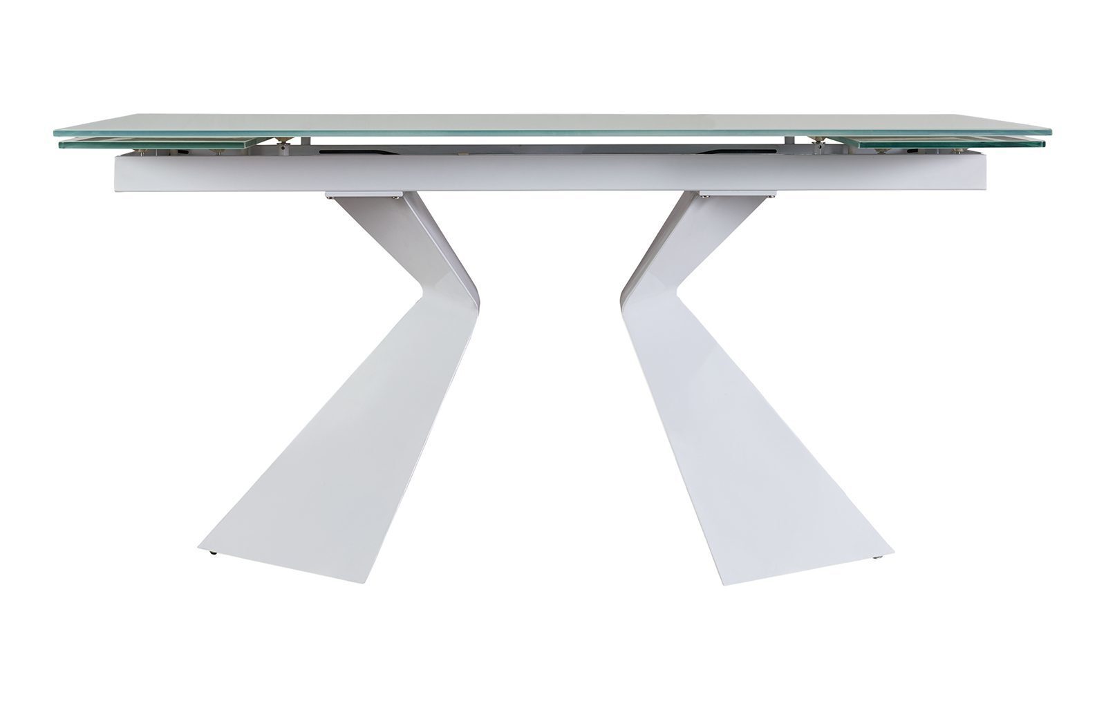 Стол раскладной обеденный с оригинальным дизайном ножек. Столешница прямоугольной формы из ультра-белого стекла. Ножки белого цвета. Стол ESF CT992 белый станет приятной изюминкой обеденной зоны в стиле хай-тек.
