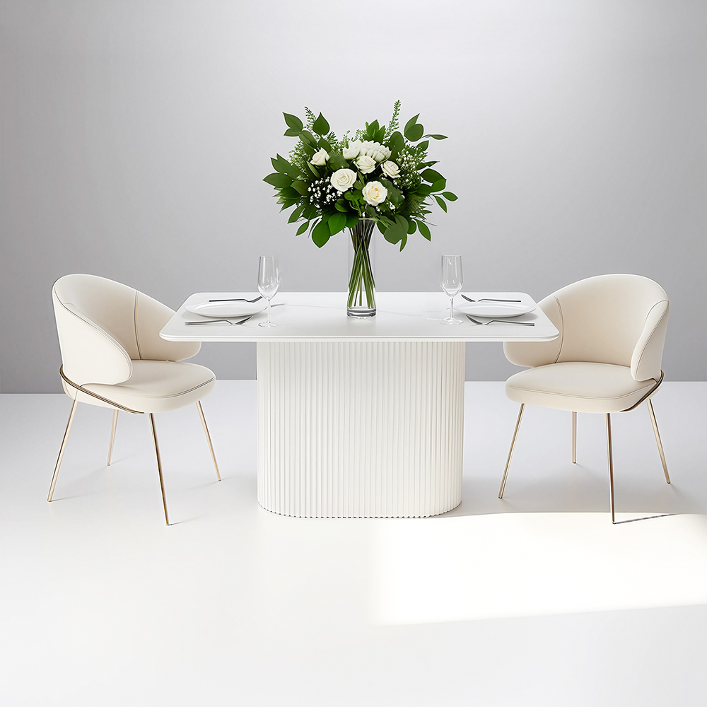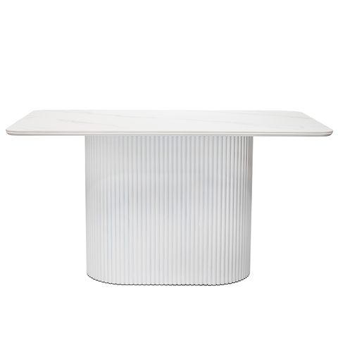 Стильный нераздвижной стол Festa – это идеальное сочетание элегантности и функциональности для вашего интерьера. Прямоугольная форма стола Festa является классикой, которая никогда не выходит из моды. Стол прекрасно подходит для различных интерьеров и помещений, таких как гостиная, столовая, кухня или офис, добавляя функциональность и уют в любую обстановку. Высококачественная керамическая столешница: стол Festa обладает матовой премиальной столешницей из керамогранита White Stone, имитирующей белый мрамор. Поверхность размером 1600х900 мм со скошенной кромкой не царапается, не впитывает жидкость и легко моется, что обеспечивает долгий срок службы и минимальный уход. Устойчивость к перепадам температур: стол идеально подходит для использования в любых условиях, не теряя своего великолепного вида. Роскошный дизайн: кристально-белый фон столешницы с элегантными серыми прожилками и изысканными деталями добавляет нотку роскоши и утонченности вашему интерьеру. Элегантная овальная опора: металлическая основа белого цвета придает столу стабильность и стильный современный вид, идеально гармонируя с мраморной столешницей. Стол Festa – это воплощение утонченного стиля и непревзойденного качества, которое украсит любой интерьер и станет вашим любимым местом для встреч и общения. Подчеркните уникальность вашего дома с помощью стола Festa.