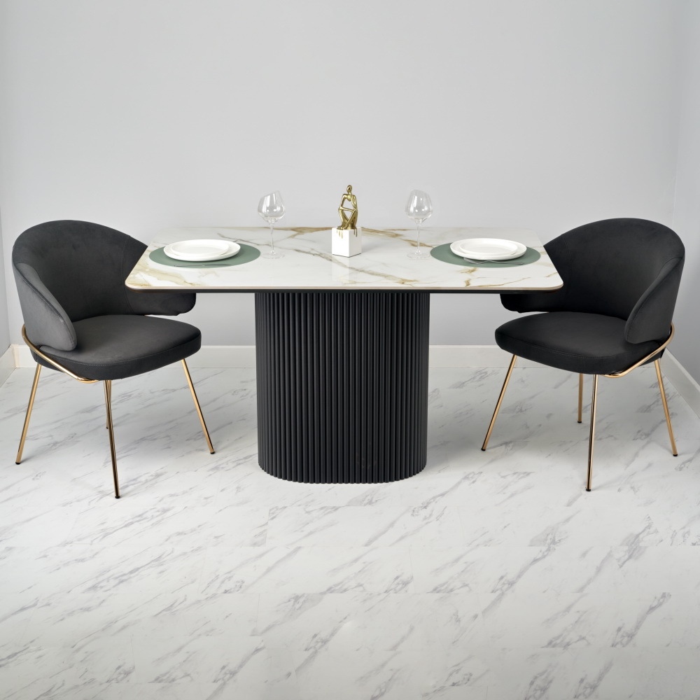 Стильный нераздвижной стол Festa – это идеальное сочетание элегантности и функциональности для вашего интерьера. Прямоугольная форма стола Festa является классикой, которая никогда не выходит из моды. Стол прекрасно подходит для различных интерьеров и помещений, таких как гостиная, столовая, кухня или офис, добавляя функциональность и уют в любую обстановку. Высококачественная керамическая столешница: стол Festa обладает глянцевой премиальной столешницей из керамогранита Calacatte gold, имитирующей белый мрамор. Поверхность размером 1400х850 мм со скошенной кромкой не царапается, не впитывает жидкость и легко моется, что обеспечивает долгий срок службы и минимальный уход. Устойчивость к перепадам температур: стол идеально подходит для использования в любых условиях, не теряя своего великолепного вида. Роскошный дизайн: кристально-белый фон столешницы с элегантными серыми прожилками и изысканными золотистыми деталями добавляет нотку роскоши и утонченности вашему интерьеру. Элегантная овальная опора: металлическая основа черного цвета придает столу стабильность и стильный современный вид, идеально гармонируя с мраморной столешницей. Стол Festa – это воплощение утонченного стиля и непревзойденного качества, которое украсит любой интерьер и станет вашим любимым местом для встреч и общения. Подчеркните уникальность вашего дома с помощью стола Festa.