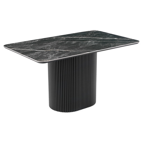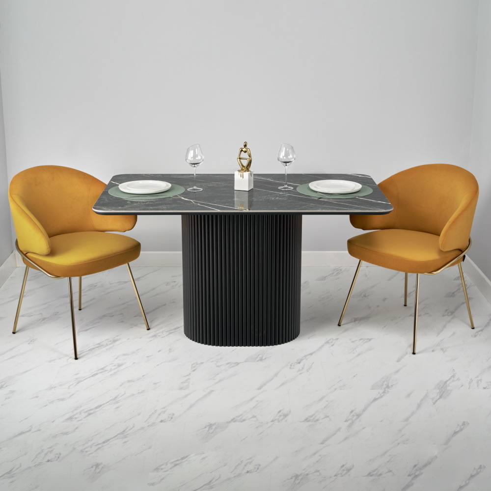 Стильный нераздвижной стол Festa – это идеальное сочетание элегантности и функциональности для вашего интерьера. Прямоугольная форма стола Festa является классикой, которая никогда не выходит из моды. Стол прекрасно подходит для различных интерьеров и помещений, таких как гостиная, столовая, кухня или офис, добавляя функциональность и уют в любую обстановку. Высококачественная керамическая столешница: стол Festa обладает глянцевой премиальной столешницей из керамогранита Wacom Forest Pulido, имитирующей черный мрамор. Поверхность размером 1400х850 мм со скошенной кромкой не царапается, не впитывает жидкость и легко моется, что обеспечивает долгий срок службы и минимальный уход. Устойчивость к перепадам температур: стол идеально подходит для использования в любых условиях, не теряя своего великолепного вида. Роскошный дизайн: кристально-черный фон столешницы с элегантными серыми прожилками и изысканными золотистыми деталями добавляет нотку роскоши и утонченности вашему интерьеру. Элегантная овальная опора: металлическая основа черного цвета придает столу стабильность и стильный современный вид, идеально гармонируя с мраморной столешницей. Стол Festa – это воплощение утонченного стиля и непревзойденного качества, которое украсит любой интерьер и станет вашим любимым местом для встреч и общения. Подчеркните уникальность вашего дома с помощью стола Festa.